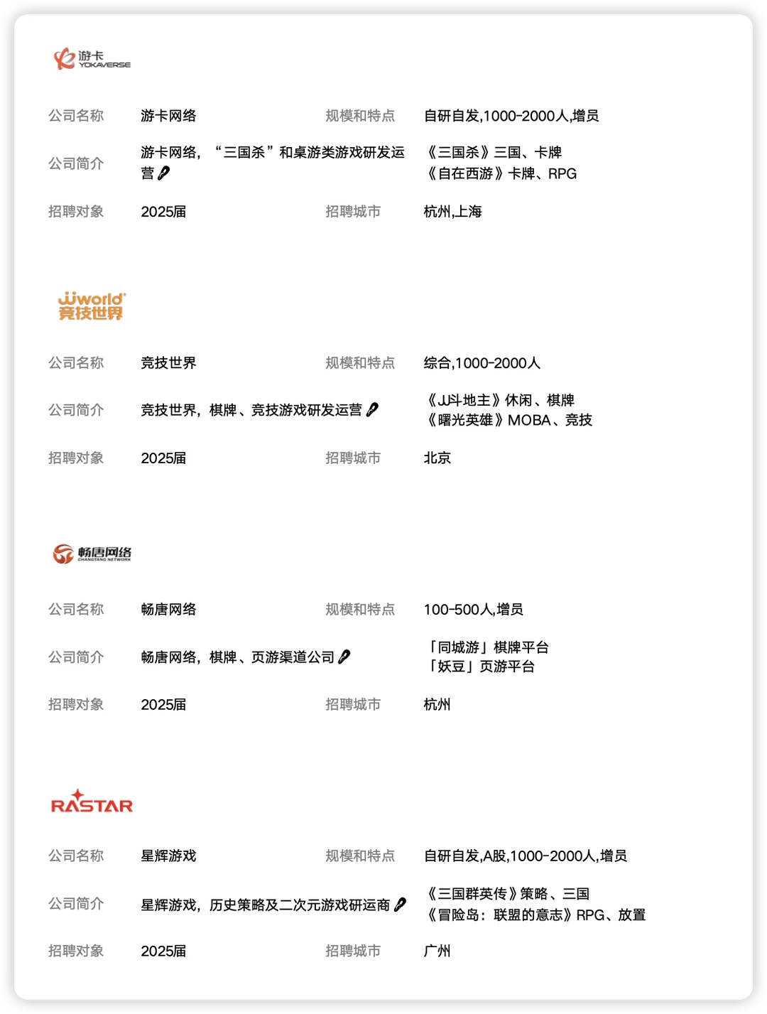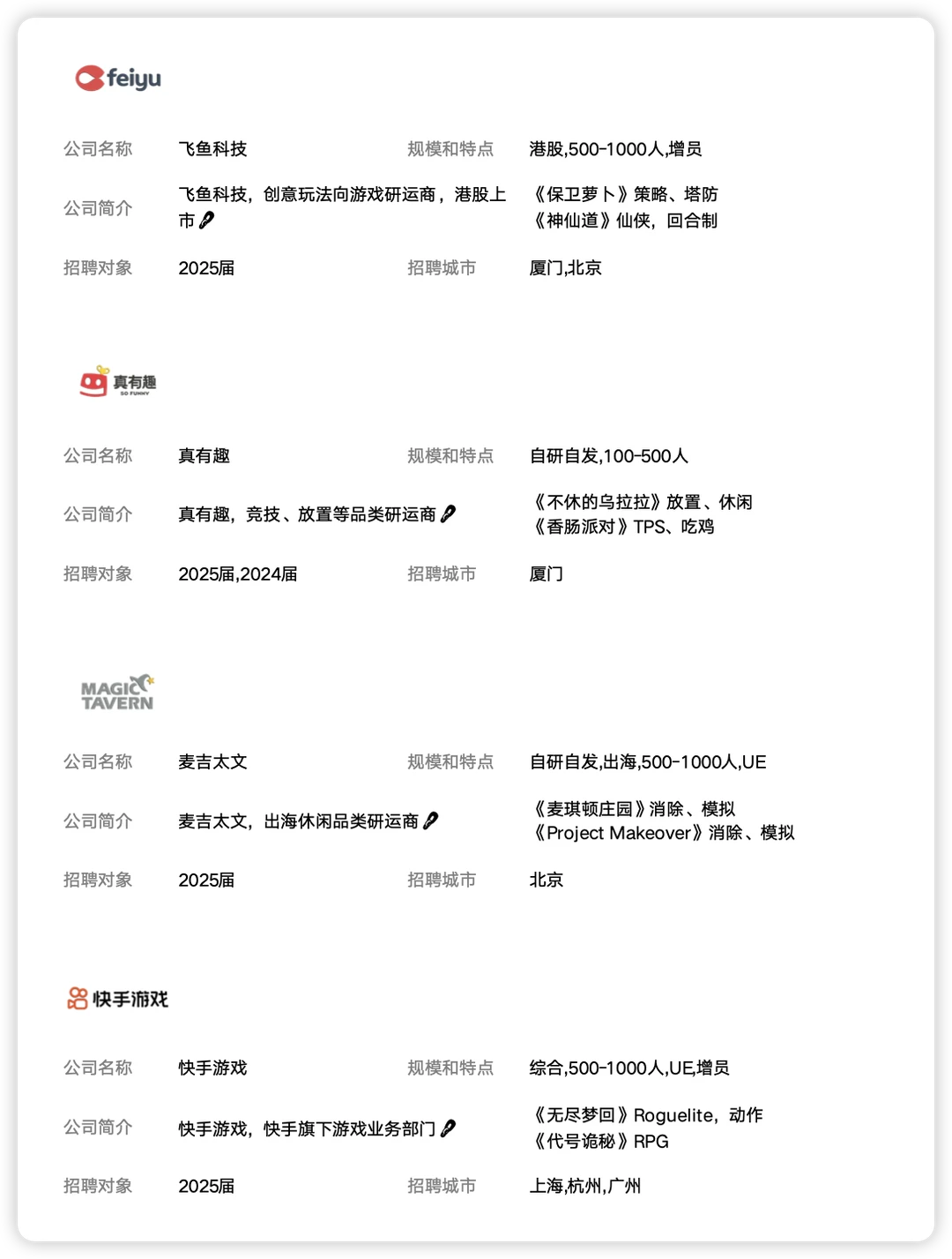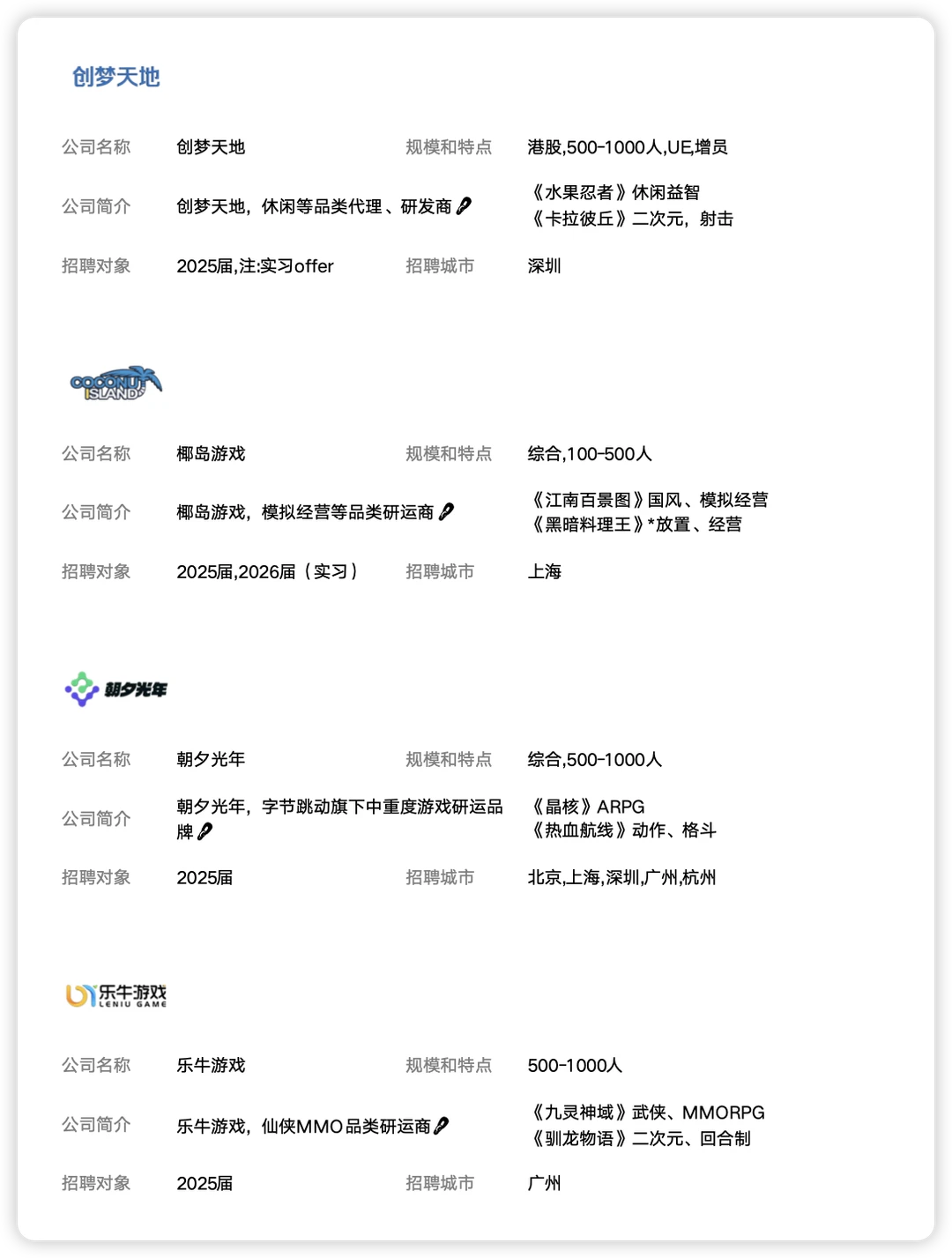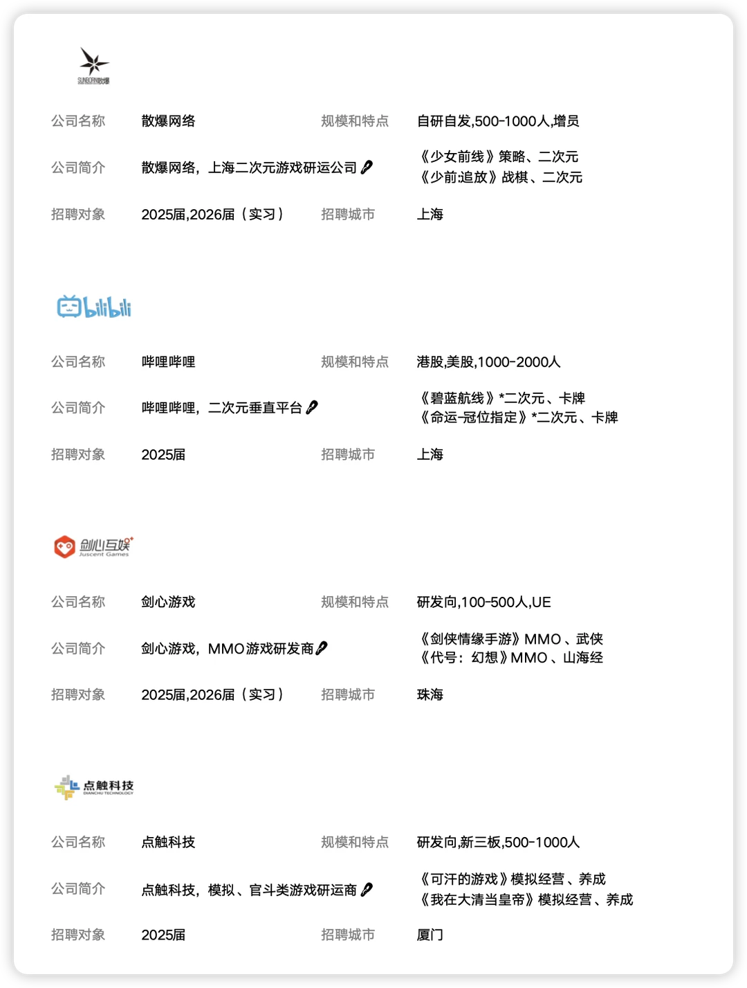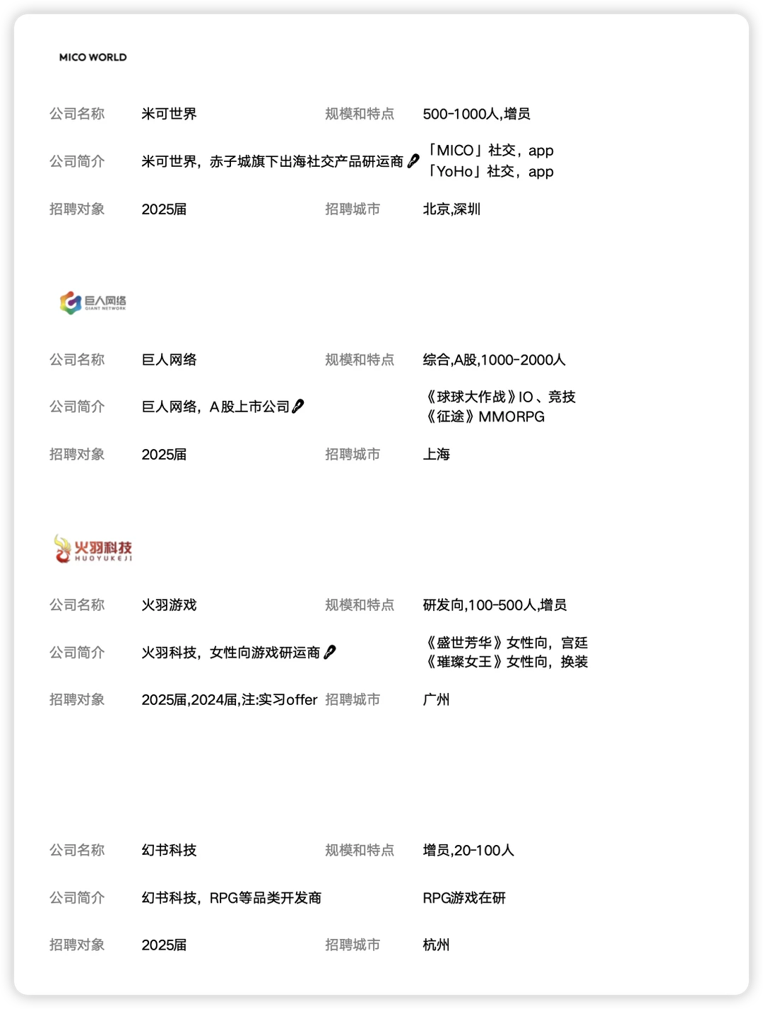 已开启秋招的游戏公司里,游戏产品或者发行能力还不错的公司(老产品或者在研产品)。