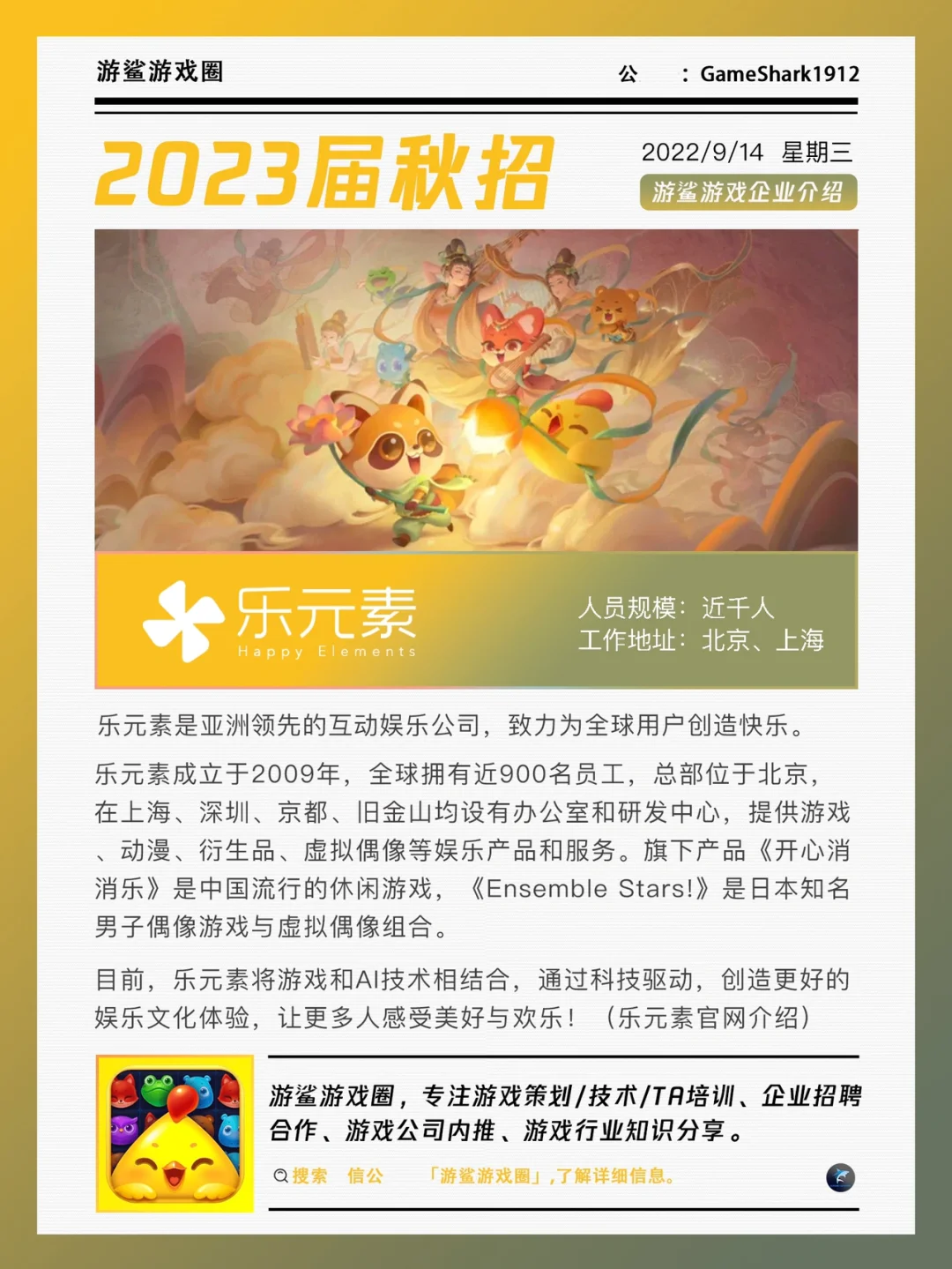 游戏公司 游戏行业 2023届秋招 乐元素 开心消消乐 偶像梦幻祭