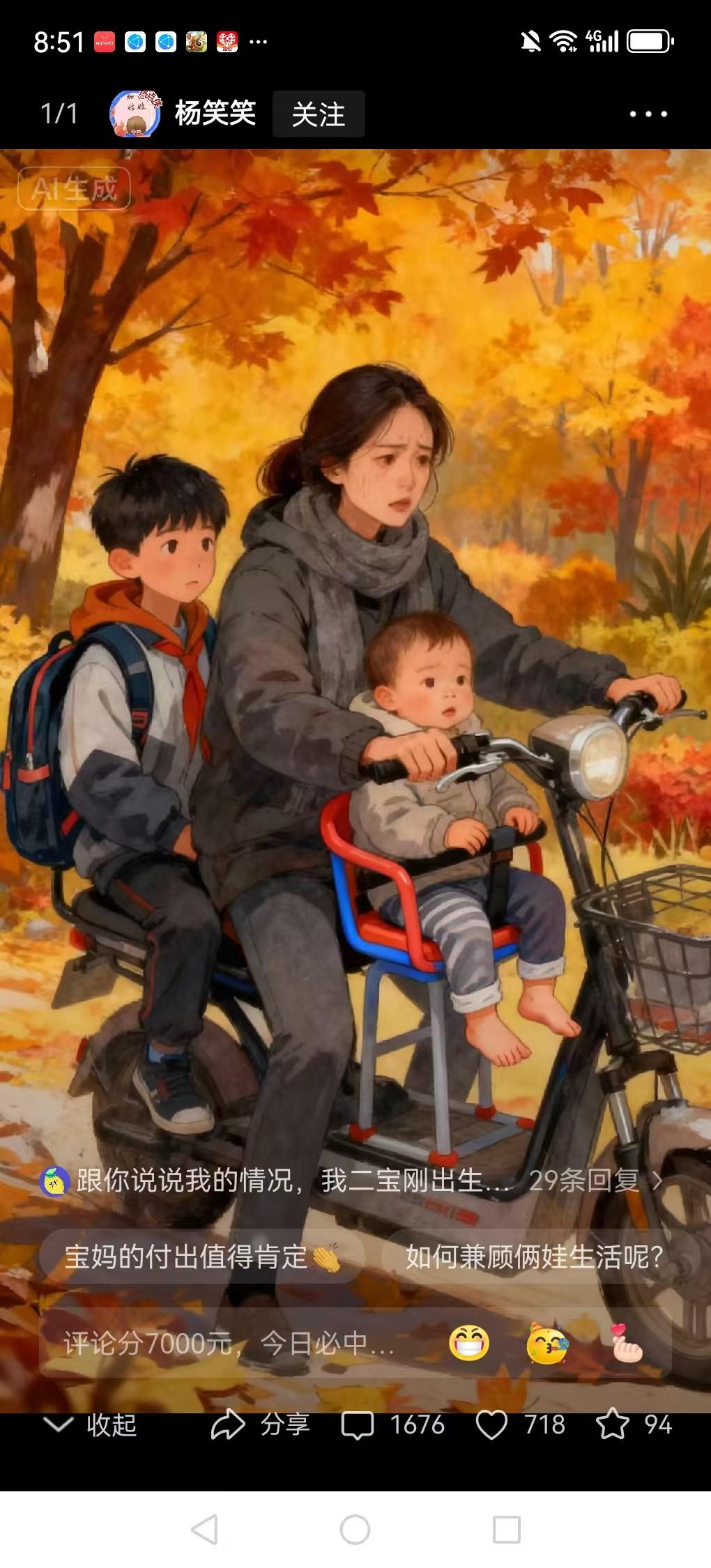 早上送哥哥上学,眼泪忍不住直流。我也是自己一个人带两个娃,我一般会提前几分钟把小的叫起来,叫不起来就让他自己在家里睡,门都锁好,把电视开着,枕头旁边放点儿吃的,醒了可以自己玩儿一会儿。 熬过去就好了,就当是给孩子的锻炼,加油孩子 加油宝妈。 我现在也是这样,每天早上几点起床都跟战场一样,先是送大宝再送二宝,再去上班,下班在接了二宝接大宝回家做饭,一辆电动车承载了我们娘仨的所有。 宝妈的强大,我也是这样熬过来的,心酸只有自己懂。 之前我还五点半起床,六点钟把孩子叫起来,带着二宝开车二十多公里去送大宝,再开二十多公里送小宝上学,然后开三十多公里去上班,从五点半忙到八点半,到单位还得连轴转。 我也是带小的接大的,天气好觉得没啥,下雨天真的很希望有个帮手,哪怕就那一会时间就行。