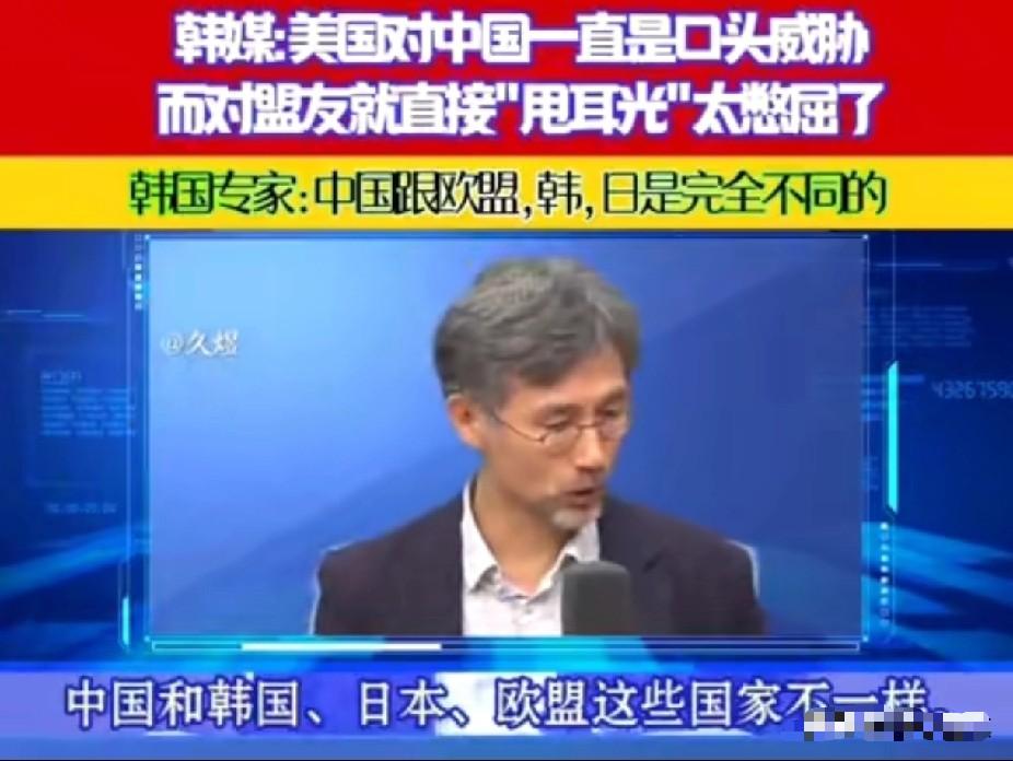 韩国专家:中国和欧盟日韩不一样! 韩媒说:美国对中国只能口头威胁,而对日韩欧盟等连背地里沟通都没有,直接对盟友打脸!反倒是对天天威胁、要打印的中国一直进行磋商,让人感觉很不公平,这是怎么回事啊,真的太憋屈。 韩国专家觉得憋屈,其实根子在美国的“算账逻辑”里。咱先看个现实:美国对中国敢天天喊“威胁”,却总得坐下来谈,对日韩欧盟却连面子都懒得顾。去年日本首相刚喊完“美国撑腰”,转头就被总统当面说“盟友不是朋友”。 今年美国新国安战略直接骂欧盟价值观“在毁灭文明”,逼日韩把军费涨到GDP5%,相当于韩国每年多掏三千亿人民币买美国武器。这差别待遇,说白了就四个字:惹不起,看得起。 先说为啥“惹不起”中国,美国不是不想动手,是真算不过账。2025年的数据摆在那儿,中国占美国进口总额18%,苹果、特斯拉每年在华赚走几百亿美元,华尔街投行算过,要是全面脱钩,美国GDP每年至少掉2个百分点。更要命的是军事牌,东风导弹能打关岛,055驱逐舰盯着航母,美军自己推演台海冲突,结论是“必输且损失惨重”。 核威慑更是明牌,中美核弹头虽有差距,但足够让华盛顿明白:真打起来不是赢不赢,是有没有未来。所以美国只能玩“嘴炮”,今天制裁芯片,明天联合军演,全是不伤筋动骨的骚扰,生怕哪步走狠了把自己搭进去。 再看为啥“看得起”盟友,日韩欧盟在华盛顿眼里,本质是“耗材”。就说日本,美国驻军基地占了冲绳20%土地,每年还要日本掏20亿美元“保护费”,但日本对美贸易顺差每年600亿美元,美国政客早就眼红。 去年逼日本签芯片协议,表面是防中国,实际是让美企抢回半导体市场。韩国更惨,三星在美国被罚的钱比军费还多,驻韩美军军费分摊五年涨了4倍,今年又要追加20%。美国算的是:你韩国没核武器,北边有朝鲜,东边有日本,不靠我靠谁? 至于欧盟,美国一边骂他们“吃独食”,一边盯着8000亿欧元的军购蛋糕,去年北约会议直接掀桌子,说欧洲防务计划不带美国玩就是“背叛”。说白了,盟友的价值就是“出钱、出人、出战略位置”,哪天没用了,随时能扔。 最关键的是,中国手里攥着美国的“七寸”。2025年中美贸易休战后,美国财政部承认,35万亿国债里,中国持有的美债虽在减少,但美元结算体系还得靠中国贸易支撑。 中东用人民币买石油,东盟跟中国搞本币结算,这些动作都在挖美元霸权的墙角。美国不是不想制裁,是怕制裁中国先崩了自己的金融体系。 反观日韩,三星、丰田再厉害,美国说卡供应链就卡,2024年台积电被迫赴美建厂,就是现成的例子。盟友的产业,在美国眼里都是“随时能收割的韭菜”。 韩国专家憋屈的点,其实藏着小国的无奈。美国对中国磋商,是因为中国有掀桌子的能力;对韩国打脸,是吃定了韩国不敢掀桌子。 就像邻居家俩兄弟,大哥天天骂壮汉邻居,却不敢真动手,转头把气撒在帮他看门的小弟身上,又是踢屁股又是加房租。小弟委屈:“凭啥他威胁你没事,我帮你看家还要挨打?”大哥心里清楚:壮汉有刀有枪,打起来两败俱伤;小弟没枪没炮,不欺负你欺负谁?这就是国际政治的现实。 美国的“公平”,永远只讲实力,不讲交情。韩国要是真明白这点,就该想想:跟着美国当“耗材”,到底是保护费,还是卖身契?