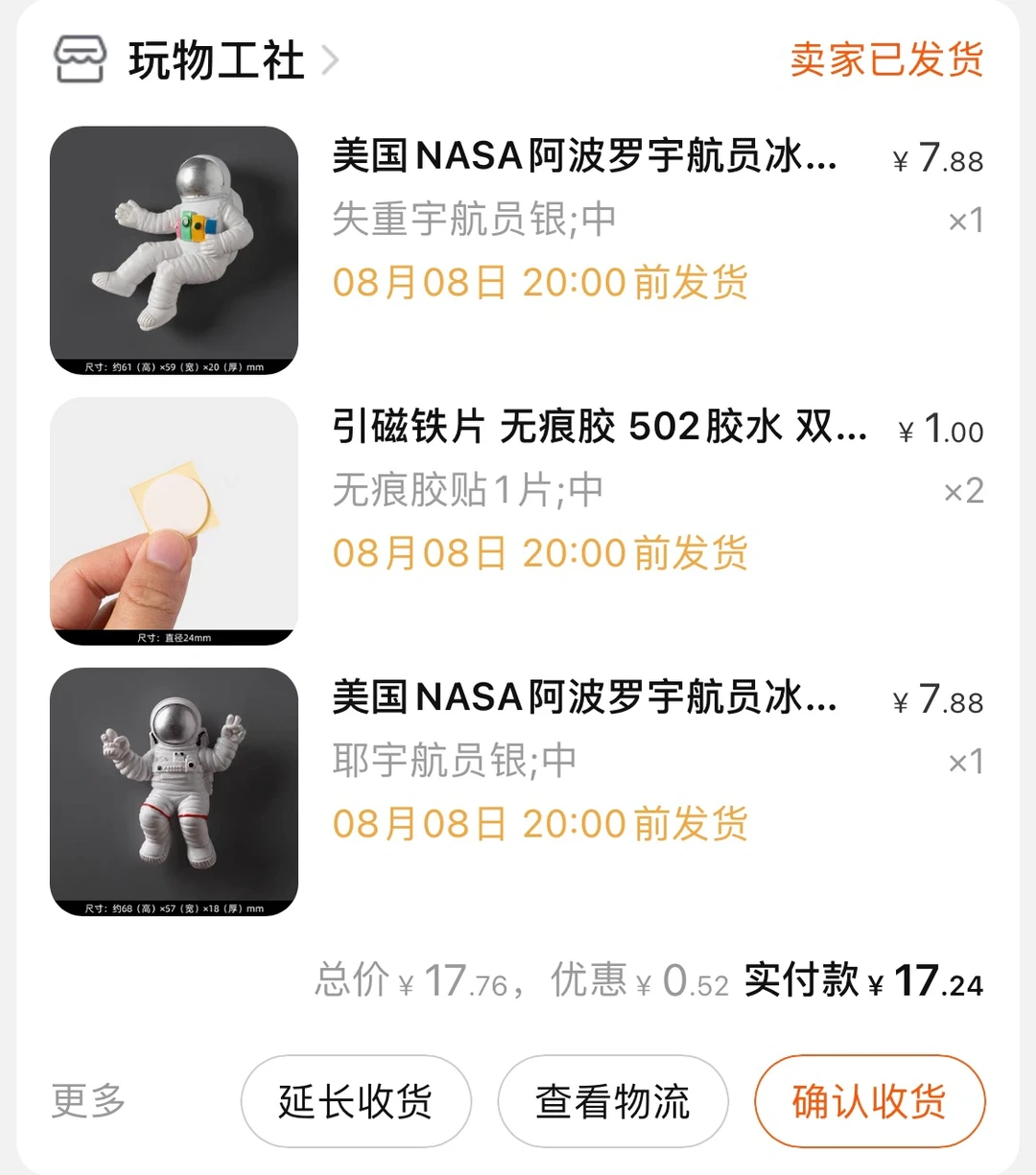 4⃣️某宝购买宇航员冰箱贴和相框🖼️,卖相框的店铺一般都可以制作打印,我选的是20*20的尺寸的,实物感觉很精致呀🥰