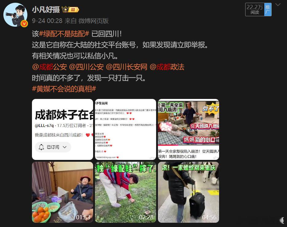 厉害!一只曝光多次的绿配不是陆配 将🐸带到了四川,还带到了重庆。这货不简单,再次希望相关单位重视。它们在重庆哪里,我倒是真想去会一会。黄媒不会说的真相