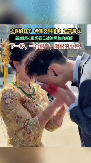 婚礼接亲现场,新郎被亲友涂成黑脸现身,新娘见到后瞬间满眼心疼,立刻伸手温柔地为新郎擦拭脸上的污渍,一个眼神、一个动作,满是藏不住的爱意,旁人看了都忍不住感慨这份感情的真挚,也让人期盼接亲能多些文明温馨的互动,少些过度的恶搞环节。接亲 接亲习俗