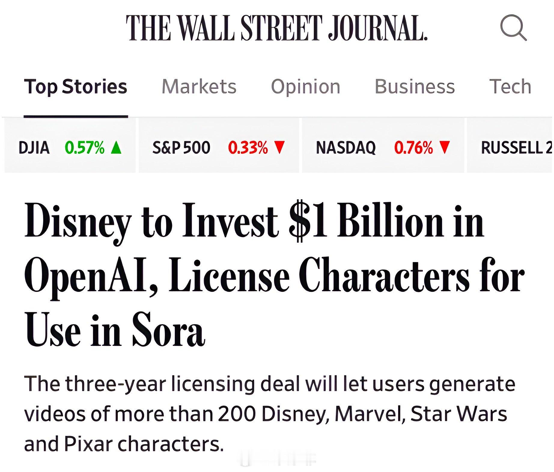 迪士尼将向 OpenAI 投资 10 亿美元。老常政经美股迪士尼openai