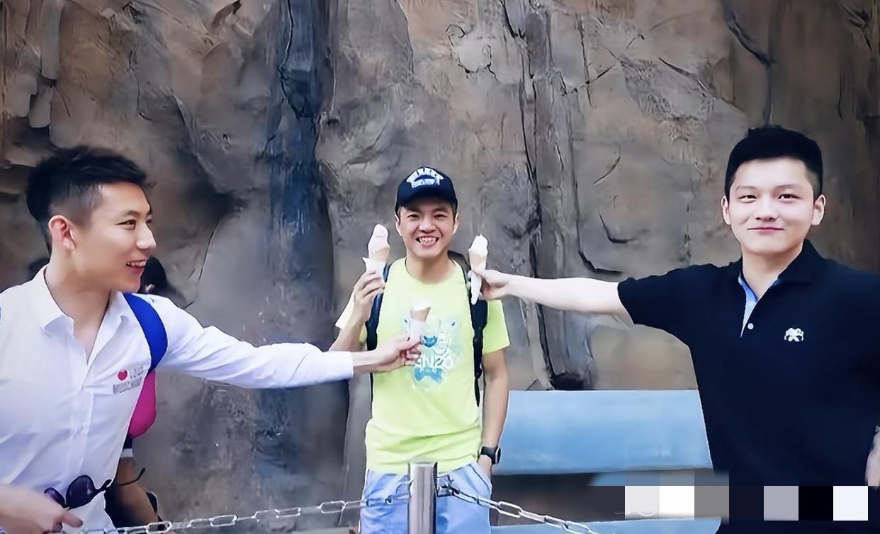 3位乒坛帅哥手捧冰淇淋的靓照:我一眼就认出了皮肤白皙,英姿昂藏的樊振东与五官立体,笑意粲然的程靖淇,你能认出中间那位喜容绽放,背包戴帽的帅小伙吗?