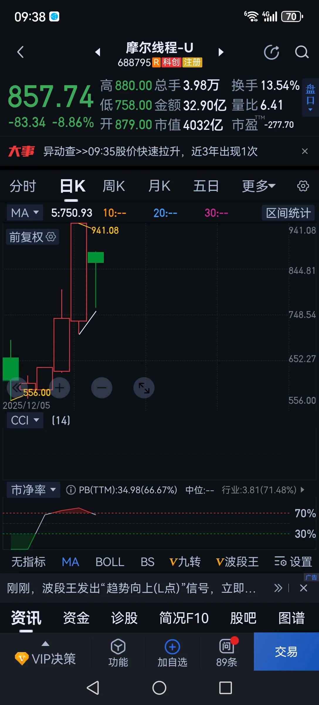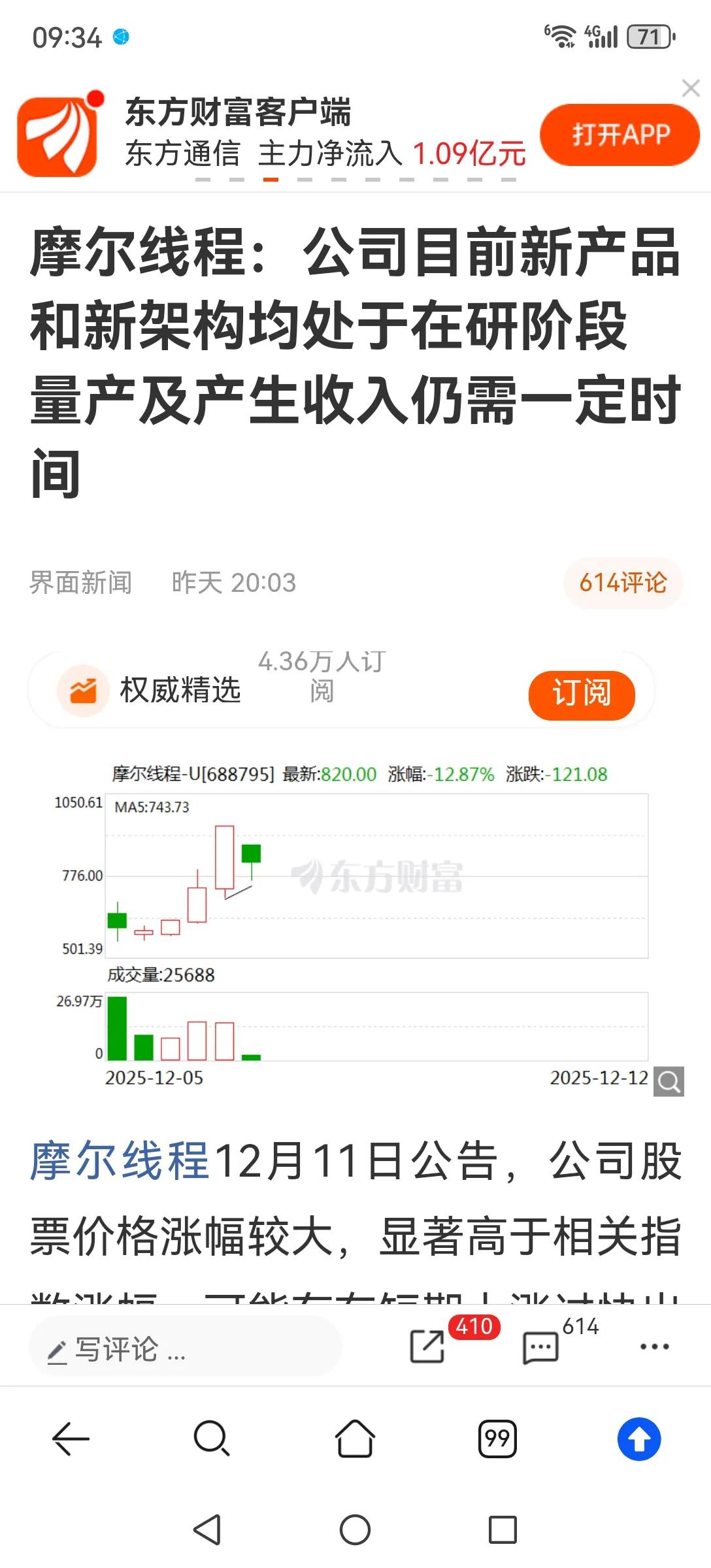 恶炒新股的结果。 昨天摩尔线程大涨大盘没涨,今天摩尔线程下跌了把大盘带下来了,这就是恶炒新股的结果。历史上有弱势炒新的恶习,一个亏损还看不到盈利希望的新股能恶炒到近千元,要不是脑子有病;要不就是满足某些人的虚荣心。制度要是这样的包容,我们这些价值投资的老股民真的该退场了!