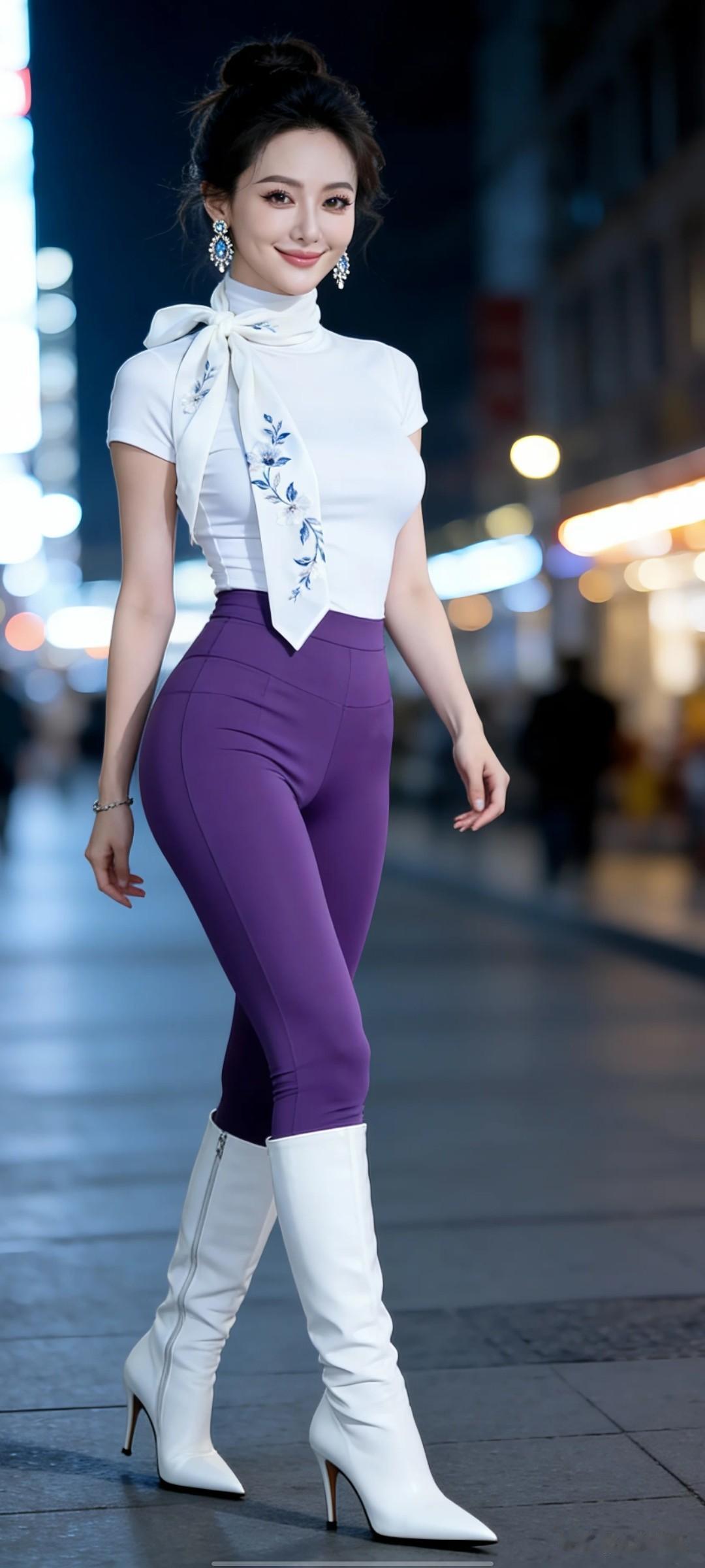 紫衣美人立,白靴映繁华。