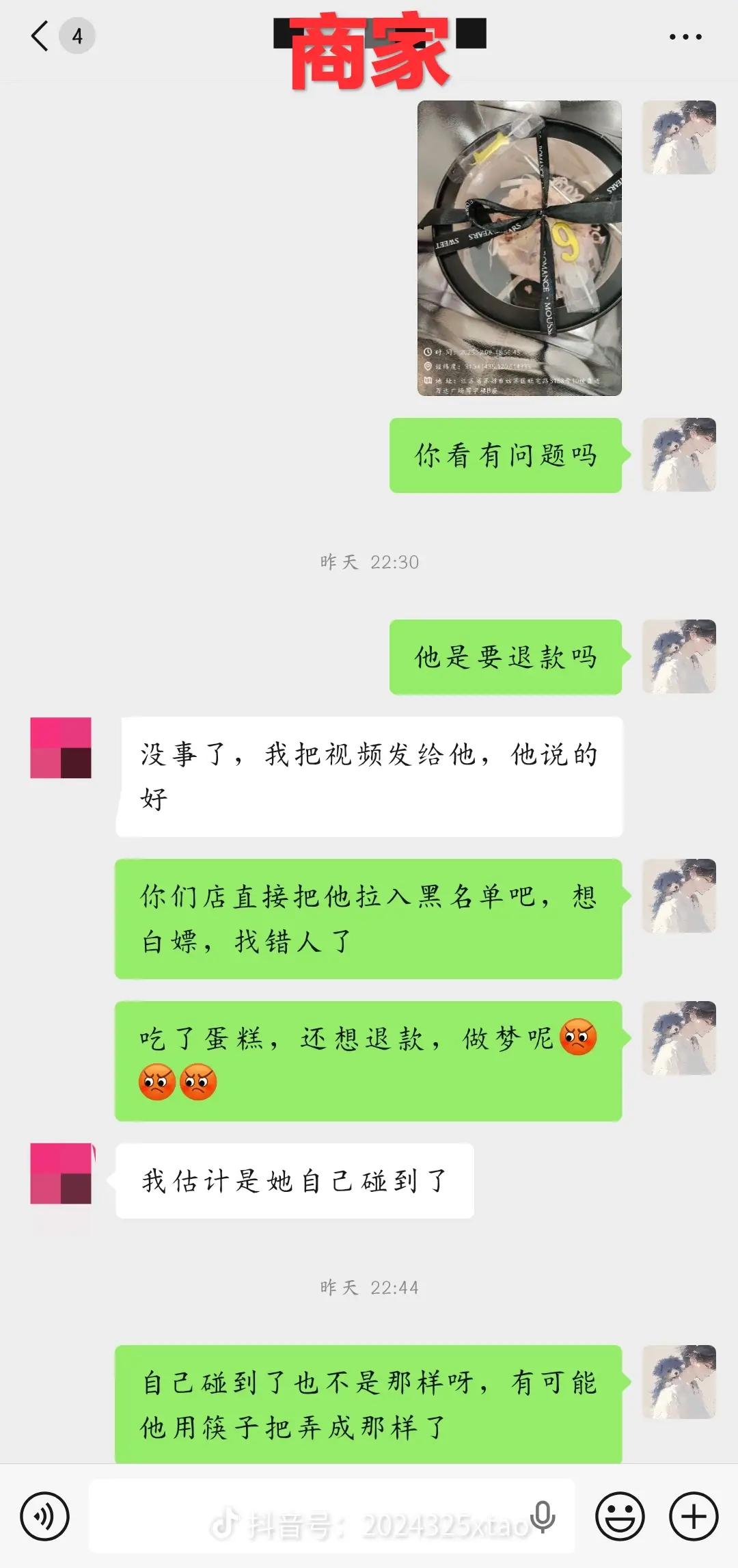 一块蛋糕本是承载甜蜜的情感消费品,却变成丈量人性小小标尺。 江苏一骑手将蛋糕完好交给顾客,没想到,四个小时后,顾客联系商家称蛋糕损坏。商家随即向骑手核实情况,骑手将交付视频发给商家。商家转发给顾客后,顾客仅回答好,并未给出更多解释。 从骑手发布蛋糕损坏照片来看,划痕位置未触及下层文字,疑似使用筷子人为制造。骑手直言顾客是想白嫖,庆幸当时运送的时候,得亏当着顾客的面拍照留记录了,否则就得赔钱了。 平台投诉,商家损坏退款,是为了保障顾客的权益,但是总有人会借着灰色地带好趁机白嫖,占便宜。尤其现在出现了很多用AI修改图片,要求只退款不退货。 建议平台出现这种想白嫖行为,彻底拉黑顾客。商家也要保质保量,确保送物品之前,物品不存在质量问题。骑手也须多留一个心眼,全程录视频拍照留底,确保后续维权。 当所有环节都带着真诚前行,那块小小的蛋糕才能永远承载着它本该有的美好,而非想丈量人心的标尺。