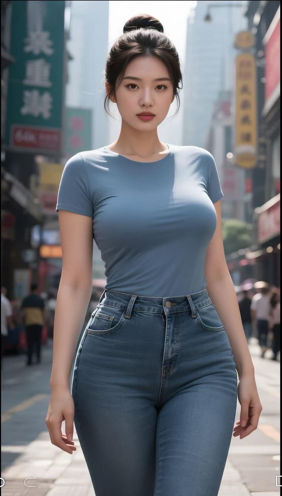 都市佳人 在繁华都市的街头,阳光为高楼披上金纱。一位佳人悠然踱步,简约的蓝色短袖勾勒出她的利落,紧身牛仔裤衬出她的挺拔。她的发髻高挽,面容沉静而自信,眼神中透着从容。周围是喧嚣的市声与匆匆的行人,她却似一道静谧的风景,于闹市中独守一份优雅,尽显都市女性的魅力与风姿。