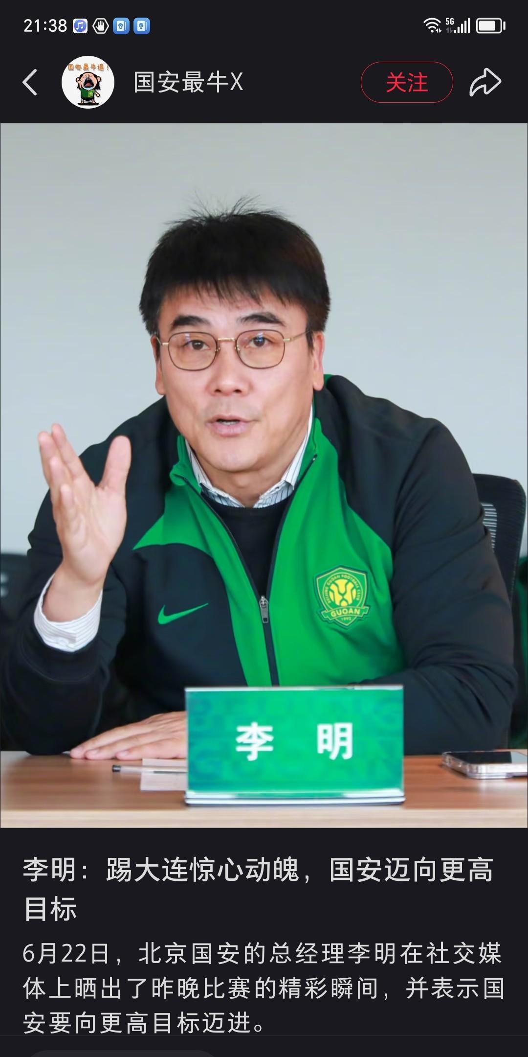 李明更衣室告别全队,九年任期到此结束! 昨天最后一场比赛结束后,北京国安总经理李明,在董事长周金辉陪同下,走入更衣室与全体队员告别,九年任期也将到此结束。李明工作合同明年二月到期,目前不会即刻离开俱乐部,将与新到位的德国籍体育总监和没有官宣的俱乐部新任总经理,一起完成工作交接后离开俱乐部。九年来李明两次带领北京国安队夺得足协杯冠军,在俱乐部最困难的环境下也是非常不容易,李明的离去,也意味着北京国安俱乐部的巨变即将到来!