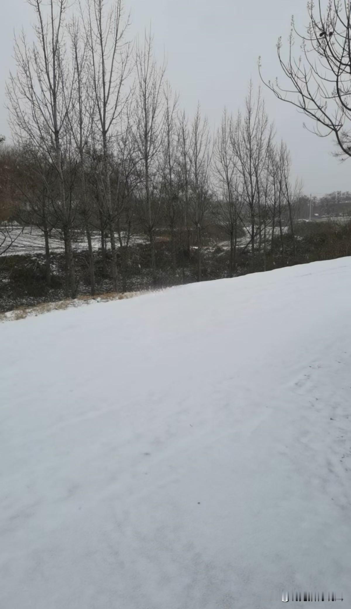 今儿出门撞见这雪景,一下子就被勾住脚步了。眼前这片雪地平展展的,像铺了层厚棉花,踩上去咯吱咯吱的,软乎乎的特别舒服。远处的树都秃了枝桠,光秃秃的枝干戳在灰蒙蒙的天里,倒添了几分疏朗的劲儿。雪还似有若无地飘着,风一吹,细碎的雪沫子往脸上扑,凉丝丝的。四周静悄悄的,就听见自己踩雪的声音,还有树枝偶尔抖落雪团的轻响。站在这儿发会儿呆,心里头的烦心事好像都被雪盖住了,安安静静的,怪舒服的。