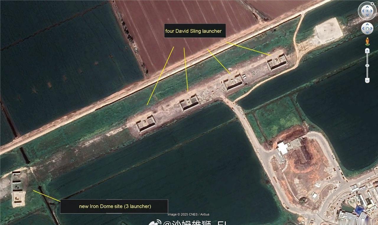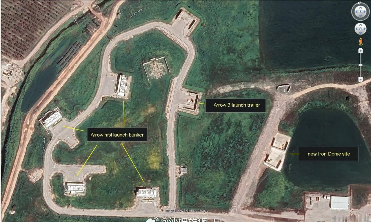 谷歌地球更新了以色列的一些卫星图像,展示了以色列和美国因伊以冲突而新部署的一些防空系统。记得吗,之前我们根据视频分析出以色列军事情报局仓库附近存在一套新部署的“铁穹”系统,卫星图像证实了我们的判断,虽然准确位置稍有偏差。 此外,一些被伊朗导弹击中的地点依然被谷歌地球覆盖了旧的卫星图像或极低分辨率的马赛克级图像。