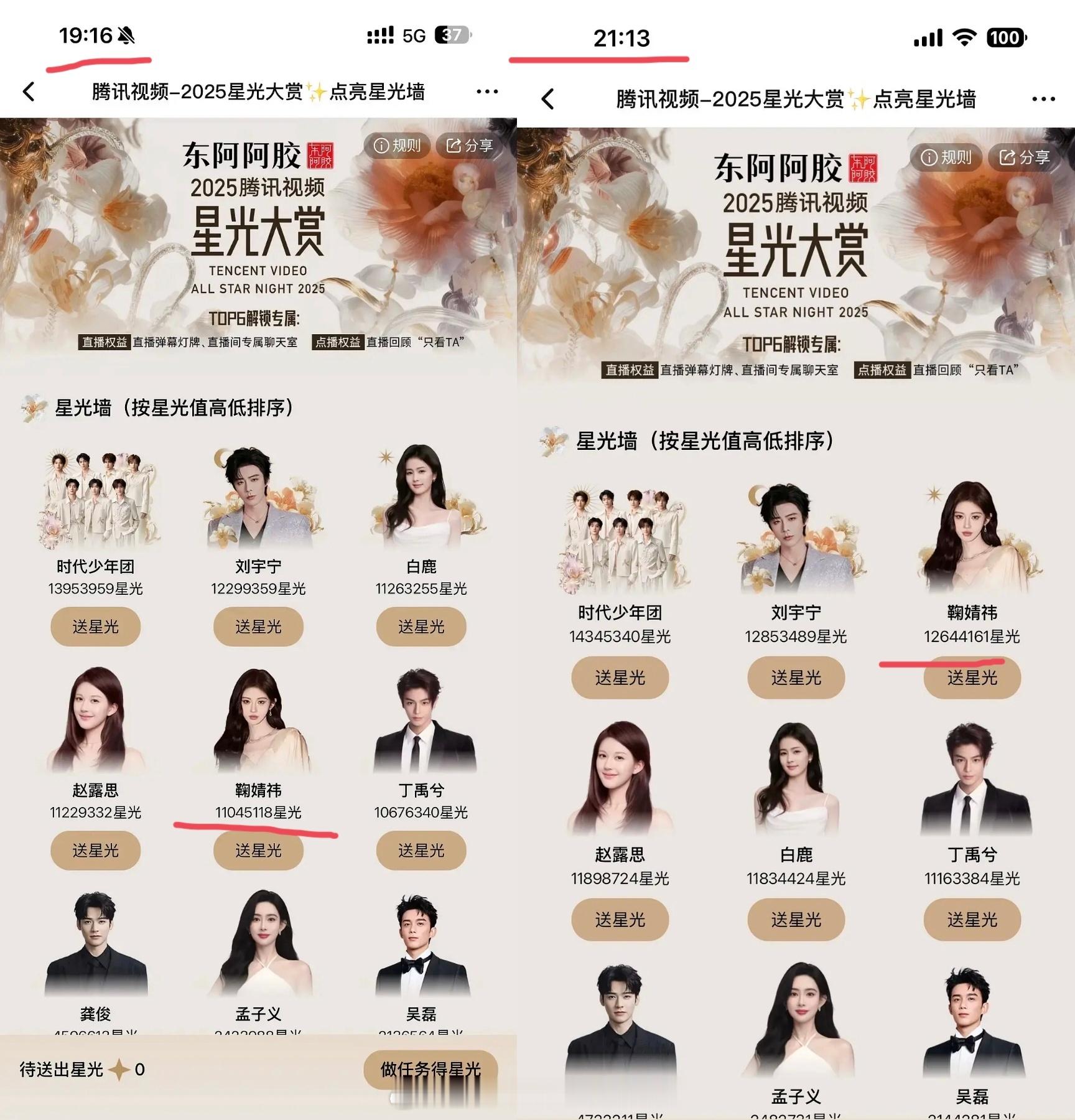 鞠婧祎星光墙第二了,虽然网友质疑一个小时涨了124万,但粉丝晒出的鞠婧祎超话热度曲线和星光榜每小时涨幅是一致的。