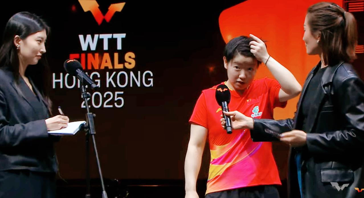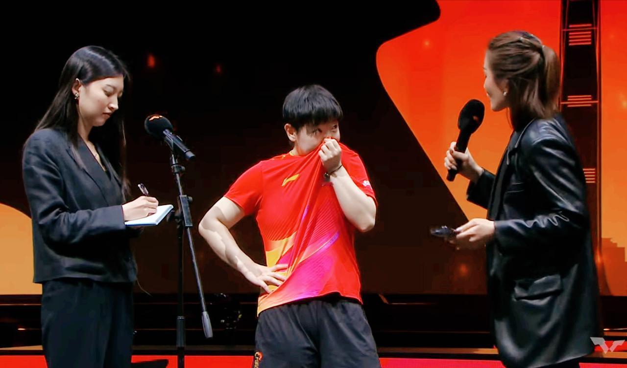 我去,主持人提问了什么刁钻问题? 一向能言善辩的孙颖莎词穷了, 快把脑门子抓秃了。 孙颖莎4:0零封长崎美柚后, 主持人问: 这是第五次赢了长崎美柚, 如何评价今天的表现? 莎莎懵了,咋说? 说我10:1拿下她, 还是说她回抛41度。 莎莎结结巴巴的说: 其实....其实(战术停顿) 我们交手并不是很多, 大家也能看出来, 她打球还是有那么一些特点, 所以打完第一局, 我做了一些调整, 后面三局打的还算比较顺利吧