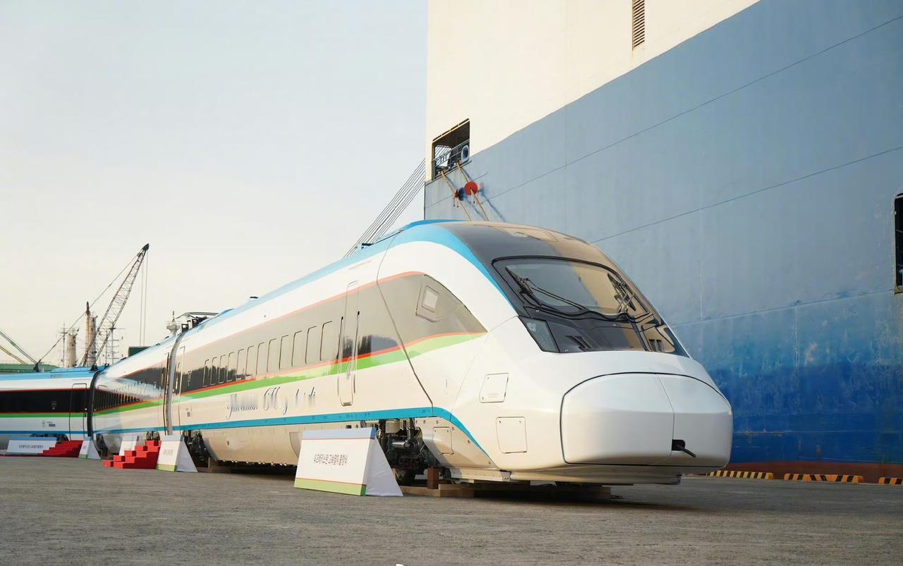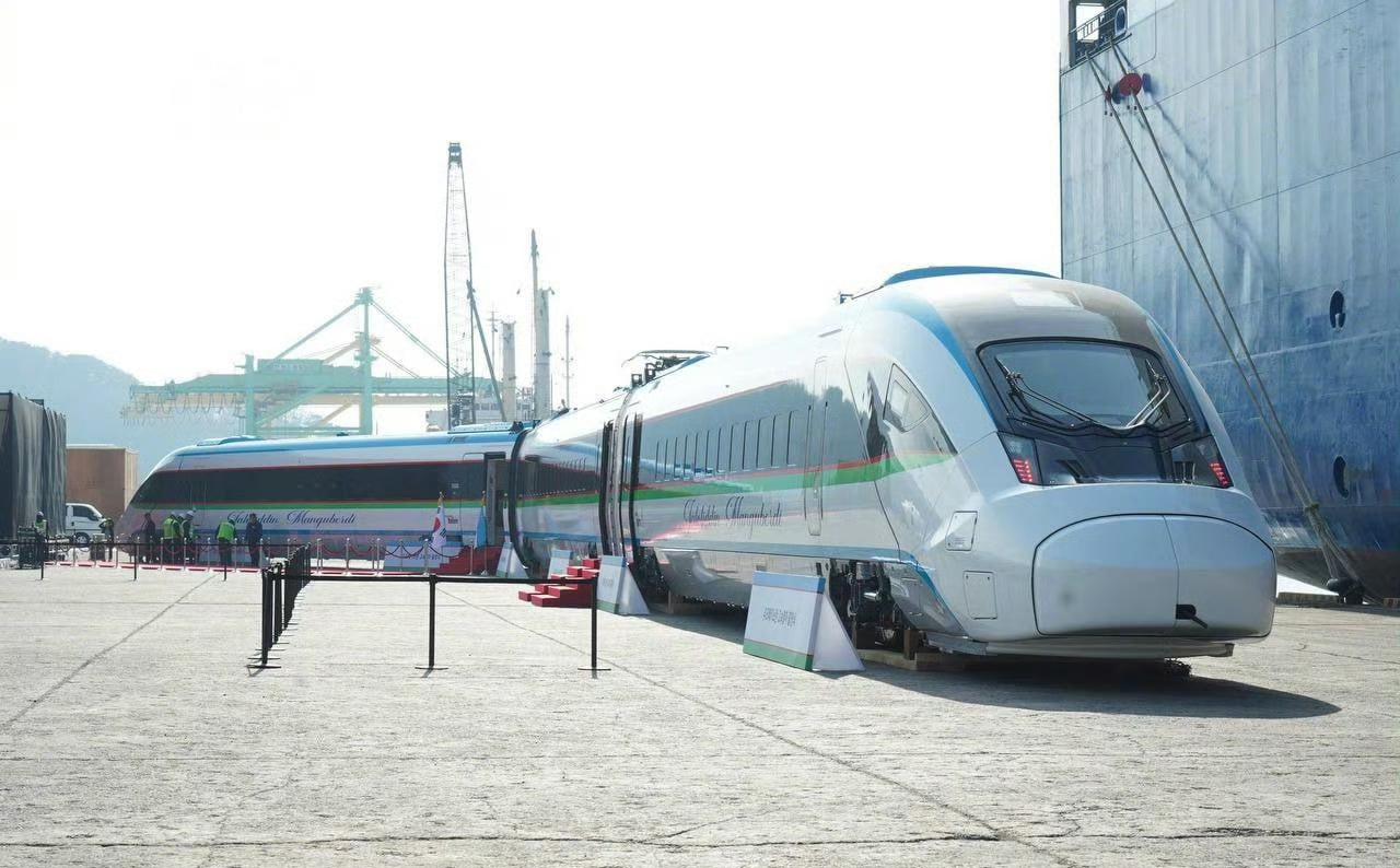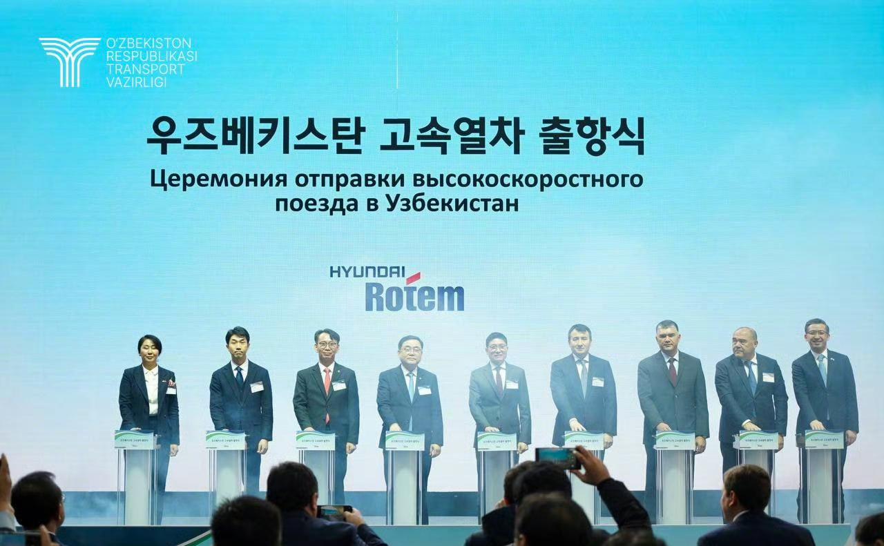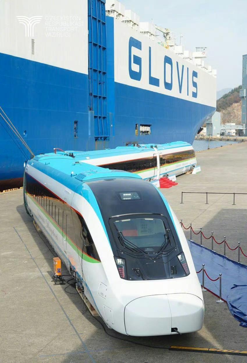 韩国也是好起来了,国产高速列车首次出口海外!直接与中国高铁竞争海外市场! 12月10日,韩国现代Rotem在昌原市马山港举行乌兹别克斯坦高速列车首列发运仪式,这也是韩国国产高速列车首次出口海外。 去年6月乌兹别克斯坦与韩国方面签订协议订购6列7节编组高速列车,随后韩国方面基于本国KTX-Eum列车,针对乌兹别克斯坦宽轨线路、极端气候以及沙漠运行环境进行了全面适配优化,从合同签署到首列发运,仅用17个月的时间,全部六列新车预计将在2027年9月前完成交付。未来将在乌国境内长达1286公里的干线上投运,其中包括连接塔什干与布哈拉的590公里高速铁路。 新车全列长175米,最多可搭载389名乘客,最高运行时速250公里,实现了近90%的韩国国产化率。动力分散设计相比乌兹别克斯坦当前运营的西班牙Talgo动力集中式高速列车有更好的加减速能力。