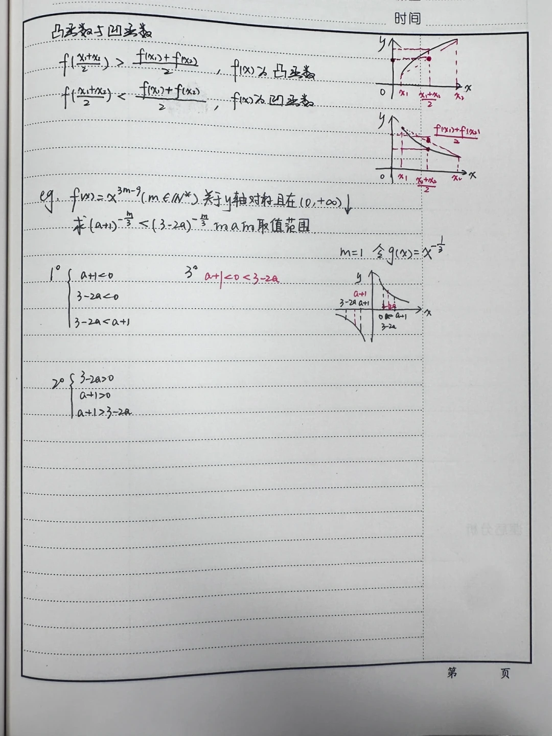 今天准备把幂函数的图象进行归类总结,让学生理解记忆,讲一下凸函数、凹函数。 再评讲几道期中模拟的作业题,强调一下易错点~