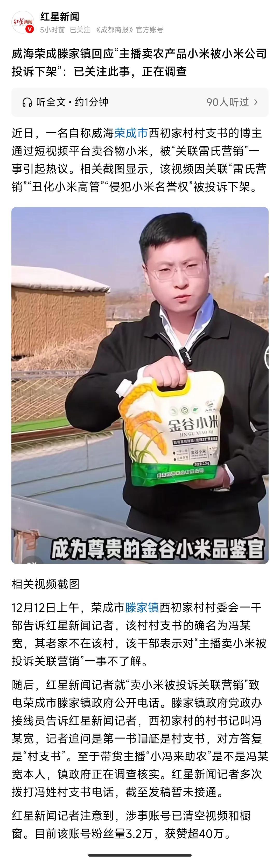 政府必须出面为这位直播卖小米谷物的主播做主!必须通过疫情可能的手段为这位主播讨回公道! 如果此事就此不了了之,或者就让这位主播吞下所有的苦果,这个口子一开以后会有很多企业群起而效仿之,简直就乱套了! 这家企业真的已经膨胀到无法无天的地步了!人家卖的是小米谷物,这是我国已经有几千年种植历史的粮食,就这都不允许人家卖,简直是反了天了! 是不是以后人们吃小米都要事先得到这家企业的许可或者批准才行,否则他们就要追究擅自食用小米的人的侵权责任? 见过嚣张的,没见过如此嚣张的!