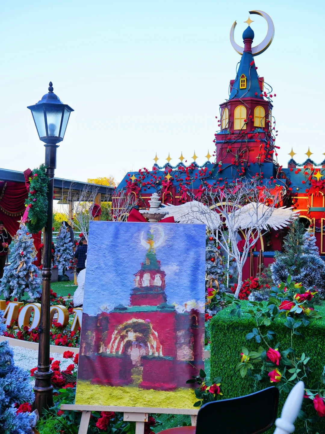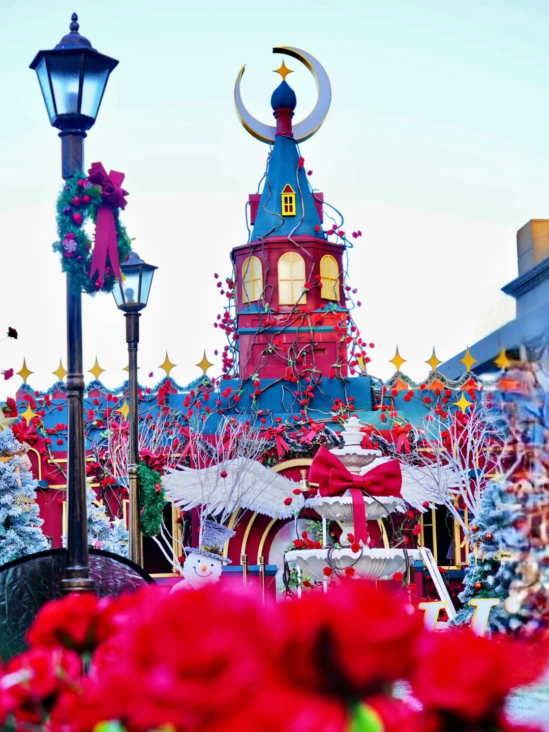 这里有超多棵圣诞树🎄、圣诞雪人⛄️、玫瑰花🌹、蝴蝶结🎀、欧式城堡🏰、钢琴🎹、秋千、月亮灯🌙等,还有6米高的圣诞树空降落日大道,圣诞期间还会限时飘雪,现场氛围简直太浪漫了!💕