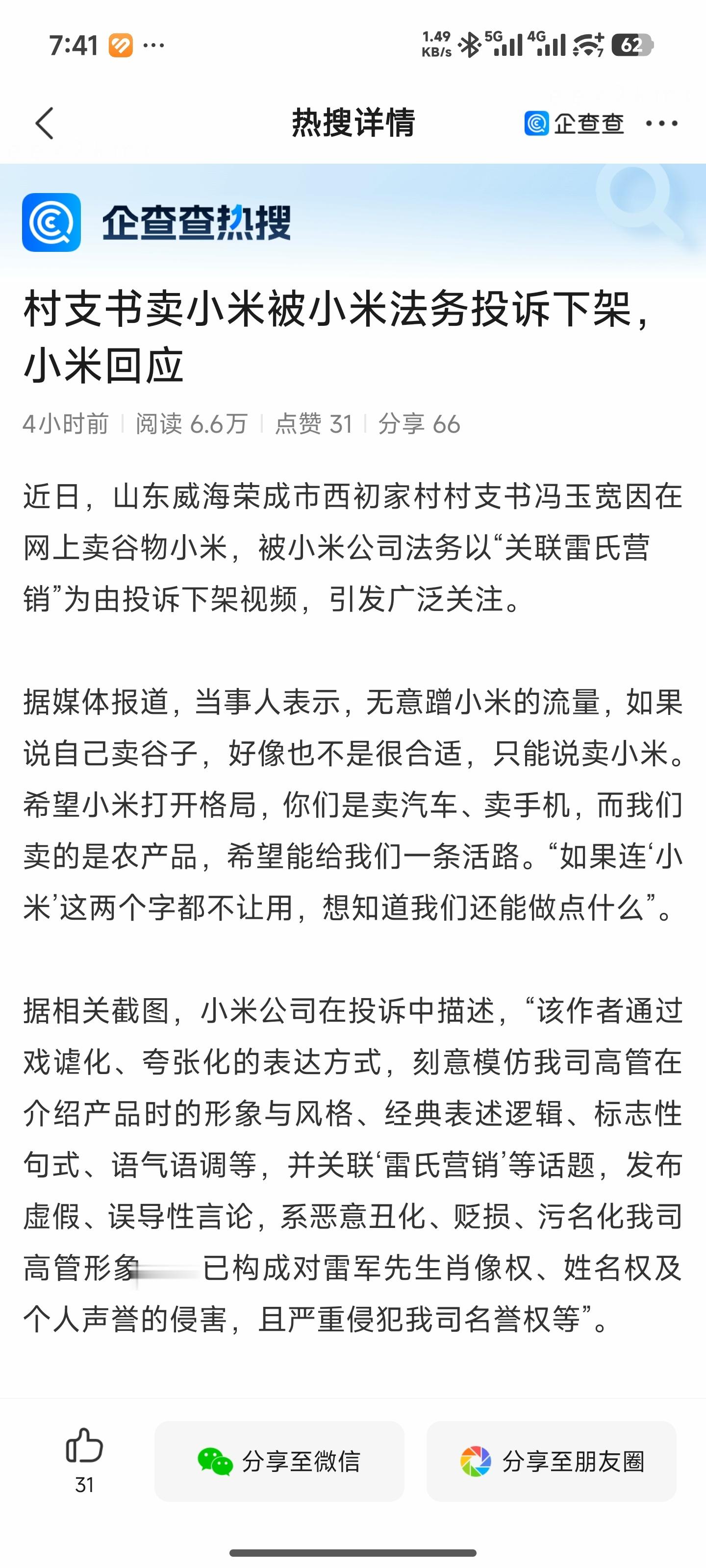 小米公司举报村支书这个事,看评论真是觉得很搞笑。咱们大陆的基础教育没有逻辑学,普遍有这个硬伤。本来就是看似小米发布会的形式,但村支书说的东西完全是胡闹。第一个搞笑就是说难道模仿雷军不行吗?这跟模仿雷军有啥关系?就好像我用播音腔说黄色笑话,这跟播音腔有啥关系?更搞笑的是还有接着回我的,说我这是把雷军演讲当作黄段子的比喻。拜托这是连比喻都不知道啥意思。花红的像火这是比喻。举例算哪门子比喻?要是应用题说小明怎么样,我举个例子说小狗怎么样,那就是我拿小明当狗了?这都啥逻辑。举例说明矛盾的点在哪,这是典型的归谬法呀。就是说如果你说的对,那么在某个极端例子下会显得非常可笑和不成立。或者叫举反例,当你认为a=b,b=a,也就是充要条件的时候,我只需要找到一个反例就行了。必要条件最容易找反例了。以前的代数课就有教逻辑的范围,韦恩斯图。第二个搞笑的是重复雷军的话就是黑吗?哪有重复雷军的话?而且有问题的是那堆胡扯的内容。这不典型的偷换概念么。我模仿马丁路德金的句式我有一个梦想,然后非法集资。警察抓我,我说马丁路德金的演讲不能用吗,这不是纯扯么。第三个搞笑的是小米都不能卖。跟第二个逻辑一样,卖小米没问题,是卖小米的时候不能同时有其他问题。典型的偷换概念。第四个搞笑的是村支书自己回应没蹭小米热度。这大概就是知道自己言论有问题,只不过没蹭小米就轮不到小米管。本来蹭小米热度的多了,这又不是原罪。蹭的方式方法很重要。你不能瞎搞。卖粮食说的那都是啥话?之前有个卖地瓜还是什么的模仿小米,那是真的套进去了,还像是真心卖粮食。这个村支书的言论已经不是在卖米了。根本挨不上。挑问题最小的来否定,避重就轻,转移话题。第五个才是真正有用的,就是小米的发布会形式是不是违法违规。以及模仿小米是不是侵权。小米肯定有违法违规的地方,被投诉整改的,被处罚的记录是有的。而且未必全部被追究。当然没违法违规的更多,所以就事论事就行了。而模仿小米如果是自己玩,只要不严重到诋毁,基本上都没事。如果是在网络传播,严重的可能构成侵权。尤其注意的是诋毁和抄袭并商用。而小米的投诉其实不一定构成侵权,他有权利投诉说明自己的主张。但主张不一定成立,还需要平台或者受理单位去评判是不是成立。也就是说,我作为原告,我可以依法起诉任何人侵犯我的任何权利。能不能成立能不能胜诉那可不一定。所以要看法院怎么受理和判决。并不是小米不能投诉或者必须要有多大依据。关键是平台觉得被投诉方确实有问题才会受理。这是平台自己决定的,并不是小米投诉拥有强制力。