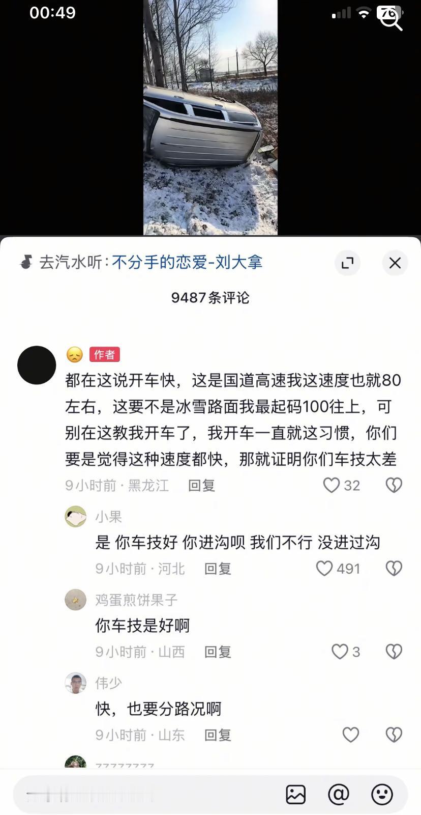 这个人不知道有什么问题,说他车技好,但是开到了沟里…… 任何路段开车都要根据当时的实际情况出发,比如说高速公路限速120最低限速60,大下雪天的,那肯定要慢慢行驶。 同理,放在任何道路上也是一样,要根据实际情况出发。各位是怎么看的?欢迎评论区留言。