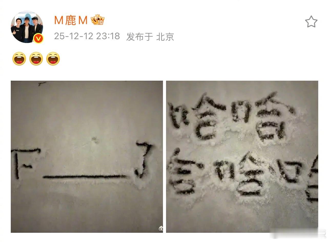 鹿晗在雪地上写了五哈鹿晗晒初雪照 终于等到!晒初雪照,用文字做表情包,还在雪地上写了五哈好浪漫的鹿哥鹿晗