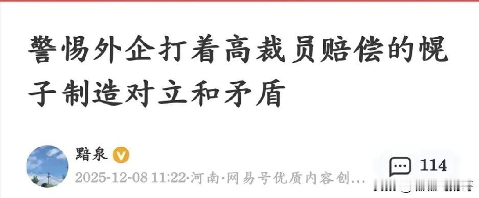 有点搞笑 , 外企裁员依法给予被裁员员工应该的高额赔偿, 竟然有人堂而皇之的在网上发言称外企这样做是为了制造矛盾对立,这是什么逻辑 ? 外企裁员给员工的赔偿很多人看来很高 , 其实也是外企依法应该赔这么高的赔偿而已。 外企又不是钱多花不完做慈善故意赔这么高 。 只是我们国内企业裁员时不依法执行 , 总是想法打折赔偿甚至不赔偿,这样的案例多了,让我们觉得外企才是良心企业 。 有对比,就有伤害,外企守法“伤害”到不守法的企业 , 不守法的企业应该脸红,应该去学习外企守法才对!