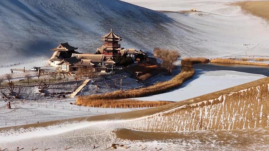 这场突如其来的降雪为敦煌增添了一份难得的诗意与静谧。金色的沙丘与纯白的雪花相映成趣,仿佛大自然用最温柔的笔触,将这片古老的土地装点成一幅流动的水墨画。雪意柔和,既缓解了沙漠的苍茫,也赋予敦煌一份宁静与浪漫,让人仿佛穿越时空,感受到这座千年古城在雪中展现出的别样魅力。这样的景色,不仅令人心生敬畏,也让人更加珍惜这片拥有丰富历史与文化底蕴的土地。