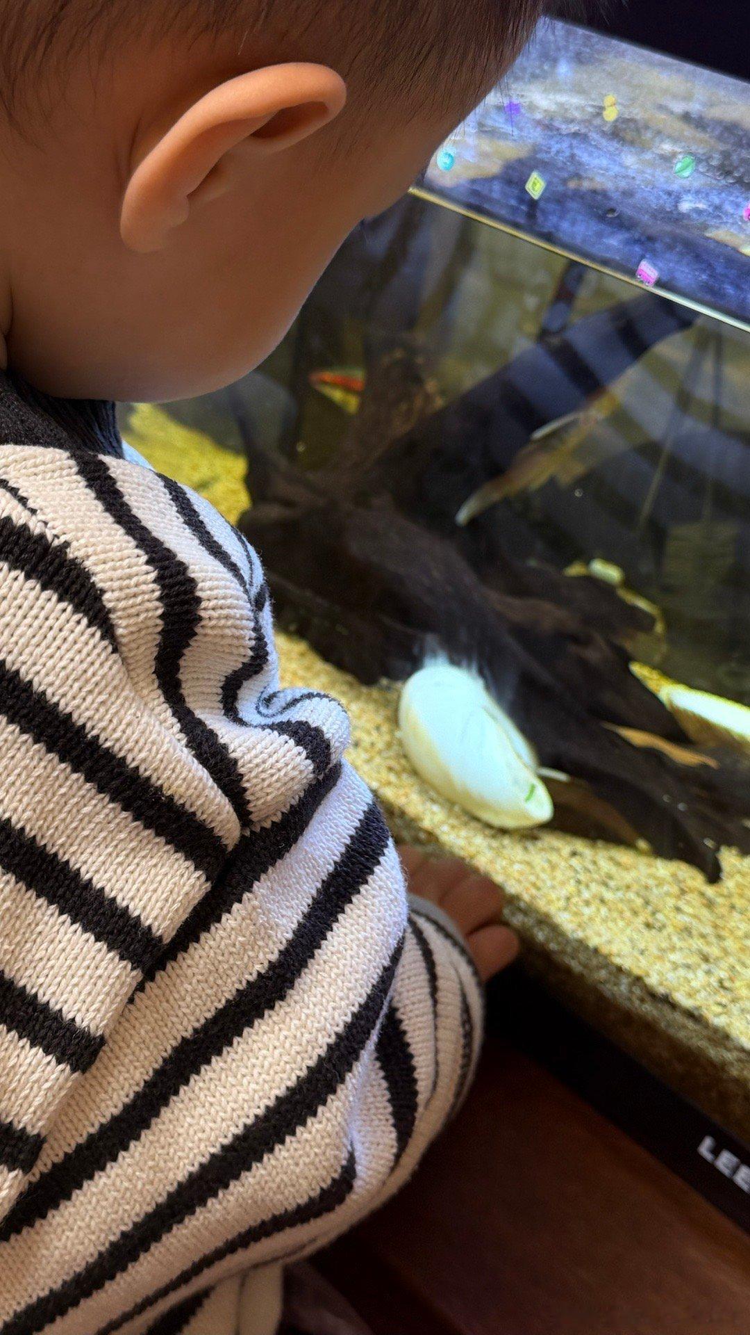 7点10分起床,8点10分开始到处找吃的!!!给小鱼吃!他自己却不吃!!!