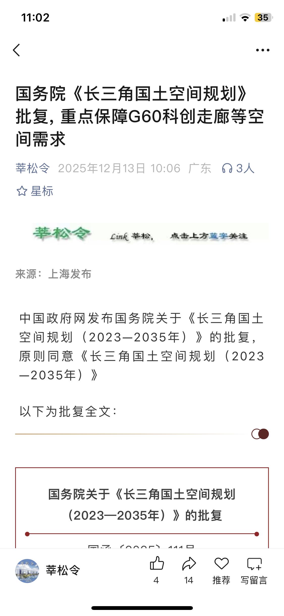 国务院批复重点保障G60科创走廊用地需求,说明松江G60云廊只是开胃菜,今后更快周边大片农田和林地全不会成为新的城市规划,大规模建设。说来松江原来各镇都规划有农业用地、林地、城市商业、产业,结果整个松江支离破碎,到处一块农田一块商业,不伦不类。要么整个松江做农业,要么整个镇做商业办公住宅,现在G60规划没进入虹桥新区概念,估计这一来以前的规划又要改了。