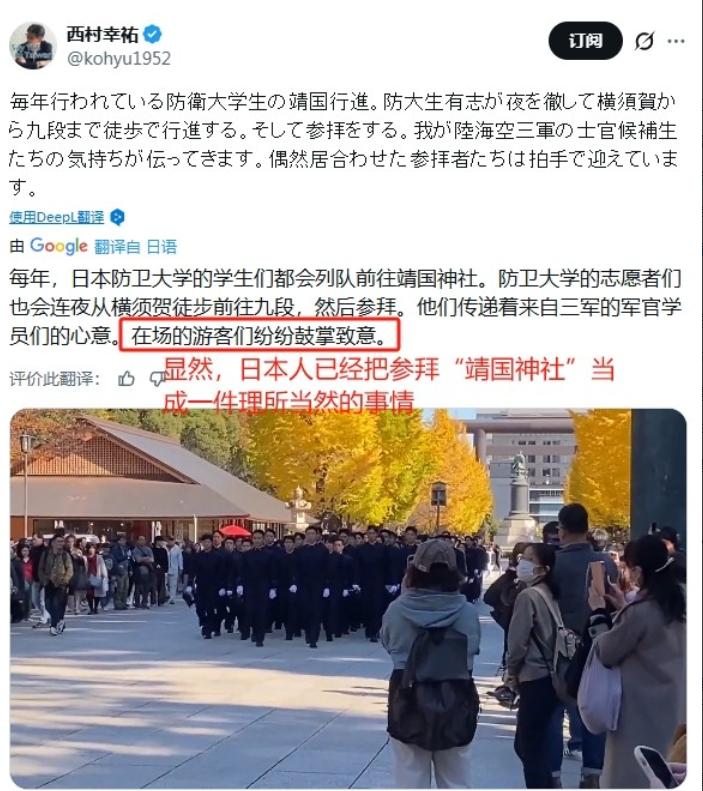 日本自卫队未来军官,集体参拜“靖国神社”,无疑暴露出军国主义思潮在日本军事体系中的顽固存续。 参拜靖国神社,崇尚战争罪犯,否认罪恶历史,就是死不悔改的新的犯罪行为。 既然现在日本军人集体参拜神厕,说明它们已经违背了当年的战败承诺,那么我们就没必要对其以德报怨了,对其所犯的滔天罪行就该重新清算了! 小日本这是在时刻提醒我们,不要忘记他们侵略中国,残杀无数中国百姓的罪恶历史。小日本时刻在警醒国人要随时做好收拾他们的准备! 所有中国军校的学员,必须要参观南京大屠杀和七三一纪念馆,日本侵华暴行,必须要进入小学中学大学的教材,组织学生观看日本侵华的电影和纪录片。