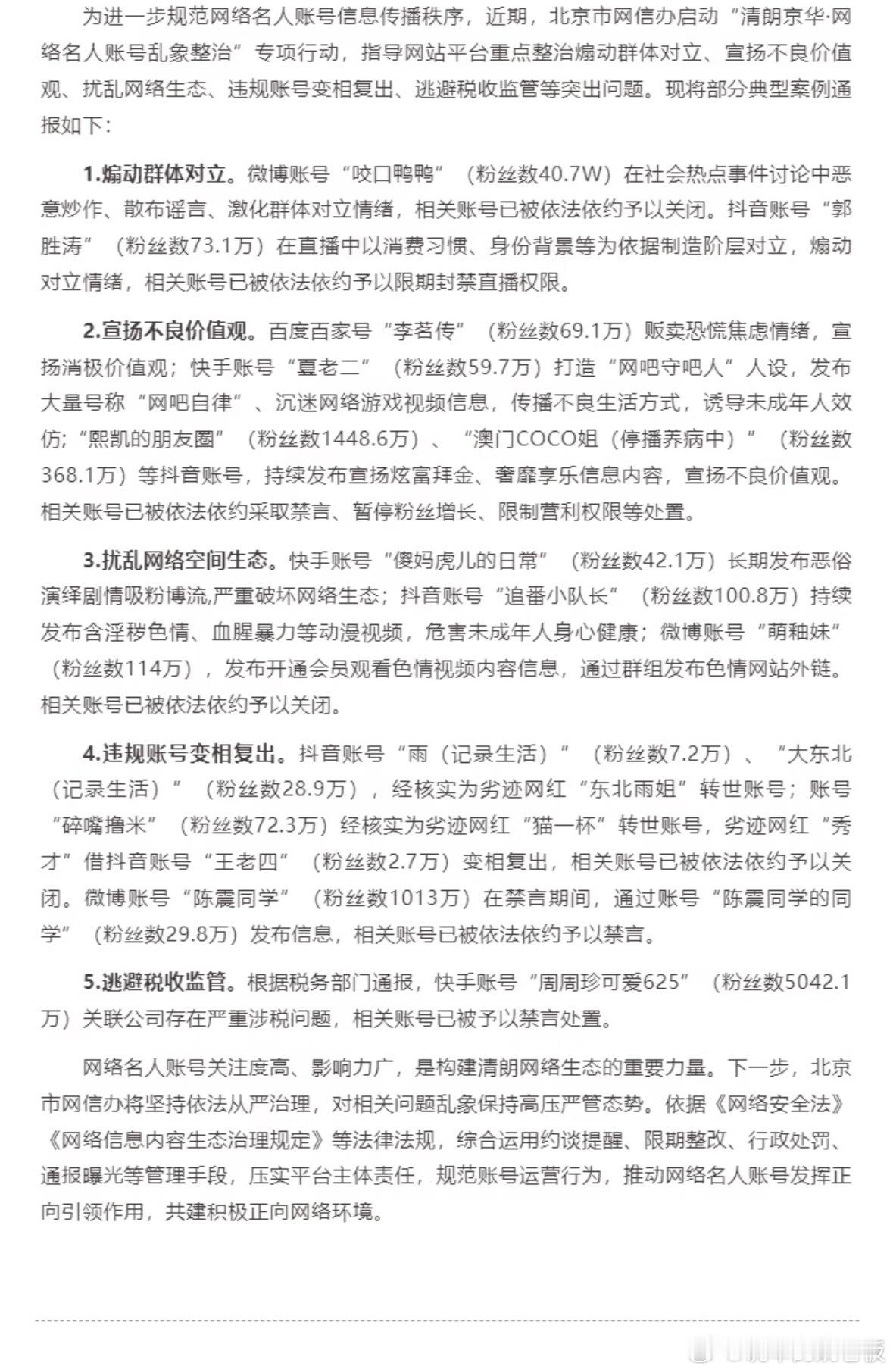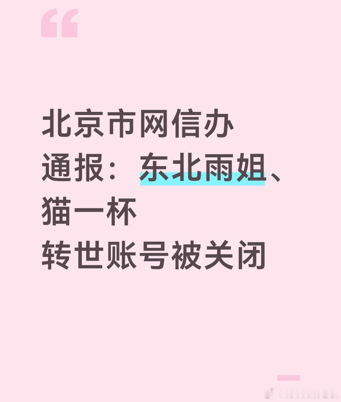 东北雨姐转世账号被关闭官方出手!北京网信办专项整治中,“雨(记录生活)”等东北雨姐转世账号被依法关停。曾靠真实乡村生活圈粉千万,却因虚假宣传被罚165万遭禁言,如今换马甲企图复出终落空。流量不是法外之地,诚信才是网红立身之本,违规复出注定被严惩,网络生态需要清朗守护!