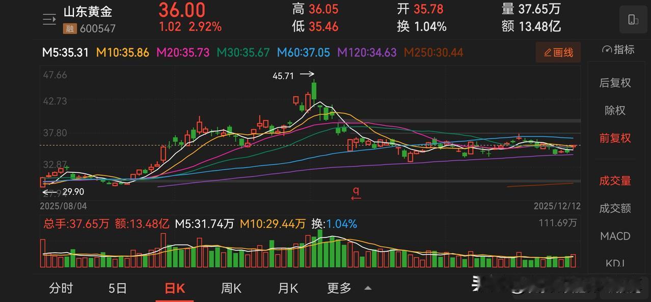 有朋友说铜期货价格下跌,下周云南铜业怎么看?我的建议是不看,该涨的时候没涨,后面会不会跌我也不知道,我能做的就是不在意它的涨跌。 今年黄金涨了那么多,以山东黄金为代表的黄金股的涨幅其实也是有限的,白银涨得很厉害,盛达资源涨了一个季度,但是他们的上涨都会带来一个问题,就是股价迅速来到了前期的高点位置附近,在这里能不能形成突破就形成了一个重大的心理博弈。 你像之前我分析北方稀土到了60块钱左右的时候就比较麻烦。一方面是之前的高点的压制,另外一方面是企业的估值偏高,还有一个是企业产品有价无市,这些东西要综合起来来看。 江西铜业已经回到了之前的一个高点附近,与此相比,云南铜业还没有做到。 现在的趋势不明朗,进入到一段无序波动,这时候需要的是定力,当然前提是要保障持仓的安全。