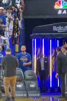 底线视角:库里从后场球员通道单手甩进跨越全场的超远三分,这就是实力