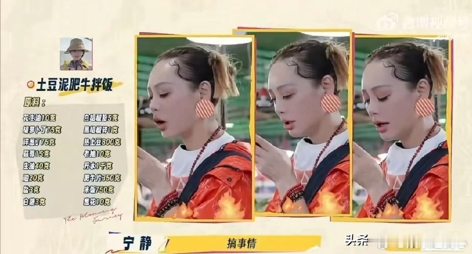 宁静在节目中发火了。宁静和刘晓庆一起去菜市场买菜,结果收到邵子恒按克数要求买的食材和调味料,当场情绪爆发,直接质问“什么玩意白砂糖3克,什么胡椒1克,什么老抽10克,葱花10克,搞事情啊?我上哪去给你搞1克2克的”。旁边的刘晓庆看到后,也赶紧和邵子恒沟通:宁静生气了,让我不理你们,我可不是挑事的人啊!最后宁静直接就买了点牛肉,让其他调料直接用老乡的,完了直接算多少钱就行。宁静这次发火确实是有道理的,要知道他们去的是菜市场买菜,怎么可能买到几克几克的调味品。不过,事后宁静也向邵子恒致歉,称是当天天气炎热,心情急躁,把佐料清单看成了采购清单,没看清楚就炸毛了,事后才发现是自己搞乌龙!