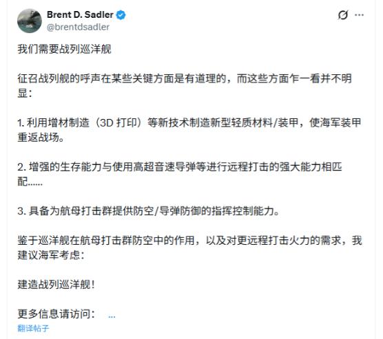 究竟是专家还是“砖家”?仅凭其在相关领域内给出的属于自己的观点或论调,我们往往就能对此人的水平有一番大致的了解和评定。如今看来,在美国也算颇具名气的防务智库“艾利森国家安全战略威慑中心”的一名所谓的“专家”,恐就是妥妥的“低水平玩家”。如果说特朗普此前的那番“应为海军重启战列舰”的论调,已经让不少人看到了这位美国总统的无知,那隶属该智库的“专家”布伦特•萨德勒的“高见”,就更是离谱到家了…… 据悉,布伦特•萨德勒在社交媒体上呼吁,“我们需要战列巡洋舰”。他先是肯定了特朗普提出的“复活战列舰”的看法,称战列舰是一种集攻防能力于一体的强大战舰,然后又指出巡洋舰在航母战斗群中的巨大作用与价值。最终,这位“专家”则表示,建议美国海军考虑建造战列巡洋舰…… 该怎么说呢?我们倒是真心希望美国政府、军方和各大权威智库中,能够多冒出一些如此水平的“专业人士”。有了他们给出的“高明的指导意见”,想必美国海军乃至是美国各大军种,都将迎来“极其光明的未来”。要知道,如果说特朗普的思维还停留在上世纪30~40年代出现的“高速战列舰”的阶段,那这位智库专家的思想则更加老套,直接回到了上世纪20年代之前。 战列巡洋舰,这是最先诞生于英国的一大舰种,其特点就是具备与战列舰相等同的火力,但以部分牺牲装甲防护性为代价,将节省出来的吨位和舰内空间,用于搭载更大功率的动力系统,从而让战舰具备巡洋舰级别、甚至是比巡洋舰更快的航速。事实证明,相比起战列舰,战列巡洋舰终归只是一种“过渡性产物”。随着舰艇动力系统的发展进步,火力、防护力和航速获得全面发展的高速战列舰,很快就让“牺牲防护性来换取高航速”的战列巡洋舰过时了。二战期间德国海军“俾斯麦”号战列 舰击沉英国“胡德”号战列巡洋舰,就是再生动不过的战例。 而今,高速战列舰都已经被淘汰了几十年之久,谁能想到居然还有人对100多年前诞生的战列巡洋舰“念念不忘”,以至于提出“美国海军应重新考虑拥有战列巡洋舰”。只能说上至美国总统特朗普,下到美利坚权威智库的专家,他们是“一个比一个会发癫”。照这种“思维退化”的路数发展下去,下一个冒出来发声的人是不是要说,“应该让美国海军复活风范时代战舰”了呢? 为了“呼应”总统的想法而不惜给出如此低水平的所谓“建议”,看来这些个美国“专家”算是把“会做人”给玩明白了……