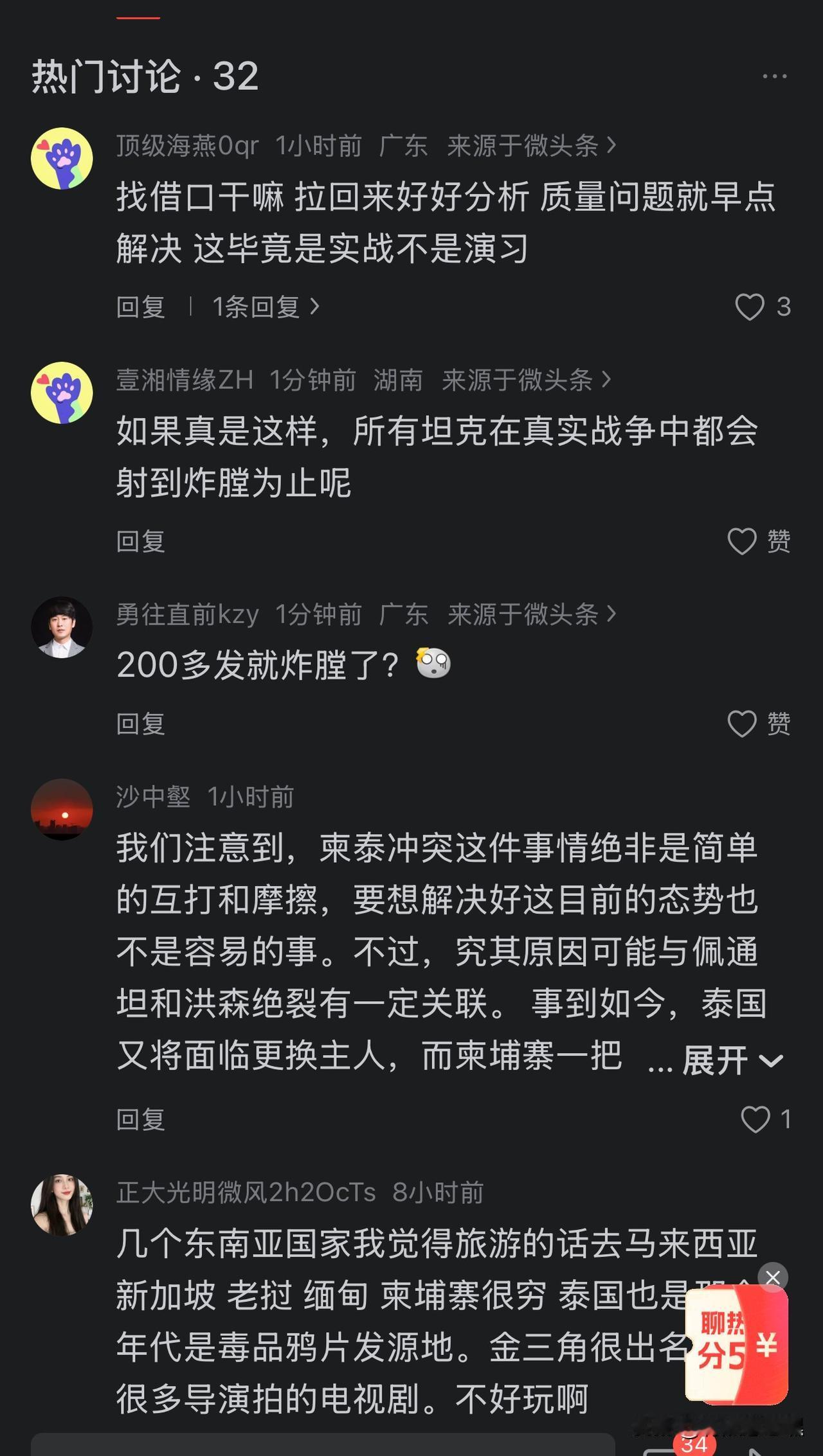 泰国购买的中国坦克炸膛了,恨国党又高潮了 近日,在泰柬冲突中,泰国从中国进口的