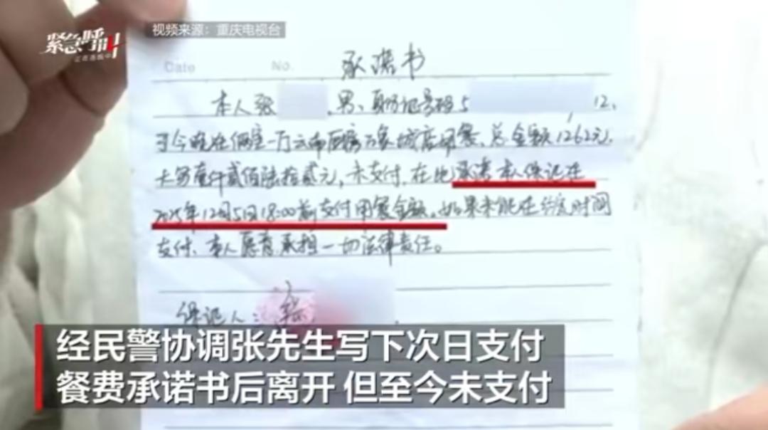 重庆10人聚餐9人溜单,剩1人写承诺书却拒付款,目前餐馆负责人已经起诉。 重庆这事儿也太离谱了!12月4号,10个人在餐馆聚餐共计花了1262块,结果散席时9个人偷偷溜走了,就剩张先生一个人留在现场。 当时张先生没钱付账,经民警协调,他写下承诺书,答应次日把餐费结清,这才离开。可谁想,承诺的时间过了,张先生压根没兑现,餐馆联系他也联系不上。 12月12号,餐馆负责人憋不住了,直接提起了民事诉讼。律师也说了,张先生既然做出了支付餐费的承诺,就得先给餐馆付钱,之后再自己找那9个溜单的朋友追偿。 网友看了都气笑了,有人说人均才一百多,没钱就别出来吃,干这事儿也太掉价了。也有人替张先生觉得冤,好好聚餐结果被朋友坑了,但更多人觉得,承诺了就得认,写了承诺书又反悔,这就说不过去了。 目前张先生的电话还是打不通,这起聚餐溜单的官司到底会怎么判,还得看后续。但这事儿也给大家提了个醒,聚餐买单别耍小聪明,承诺的事更要守信用,不然最后坑的还是自己。聚餐账单 重庆朋友聚餐 重庆餐饮纠纷 重庆餐馆 重庆聚餐店 聚餐 和朋友聚餐你能接受AA制吗?