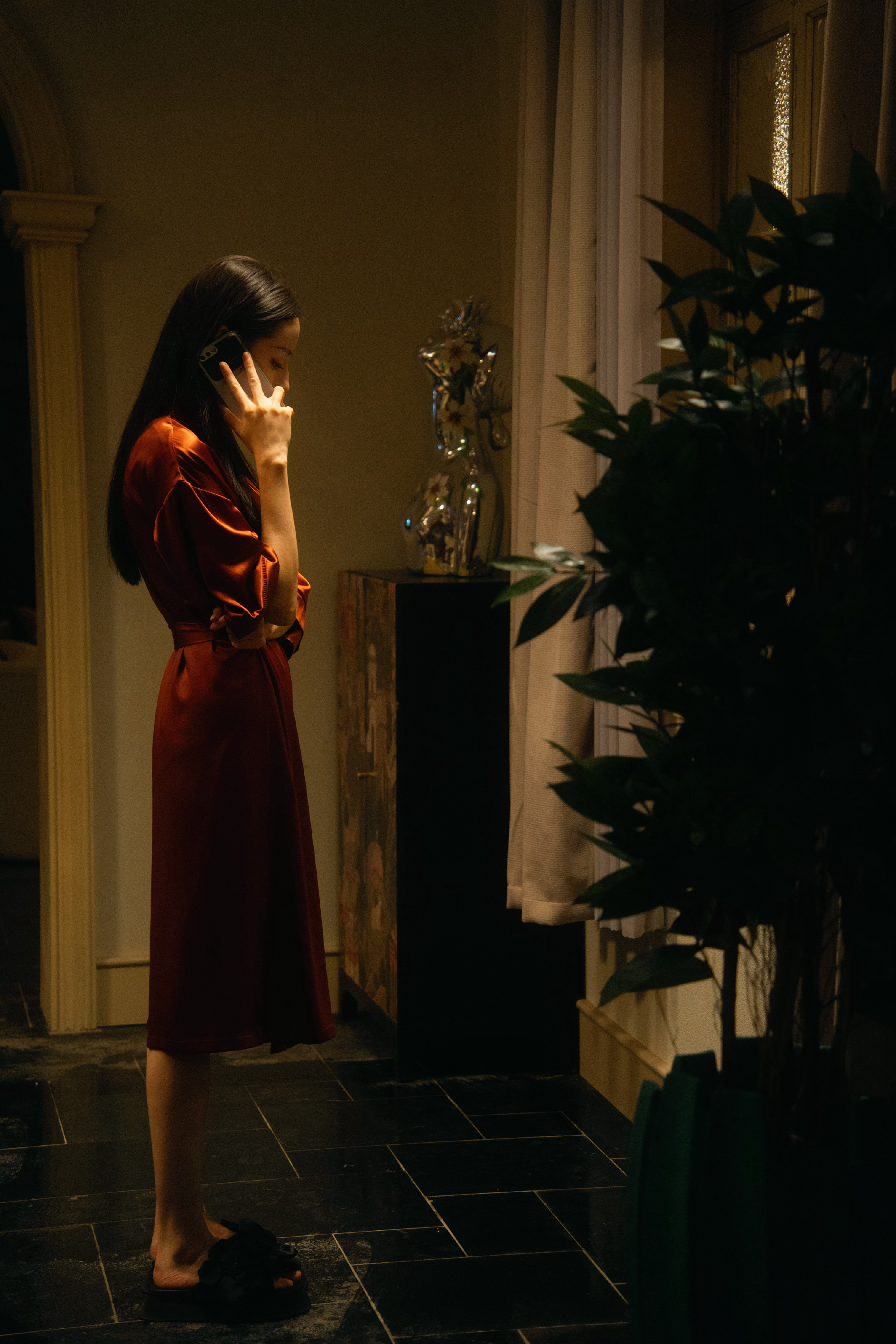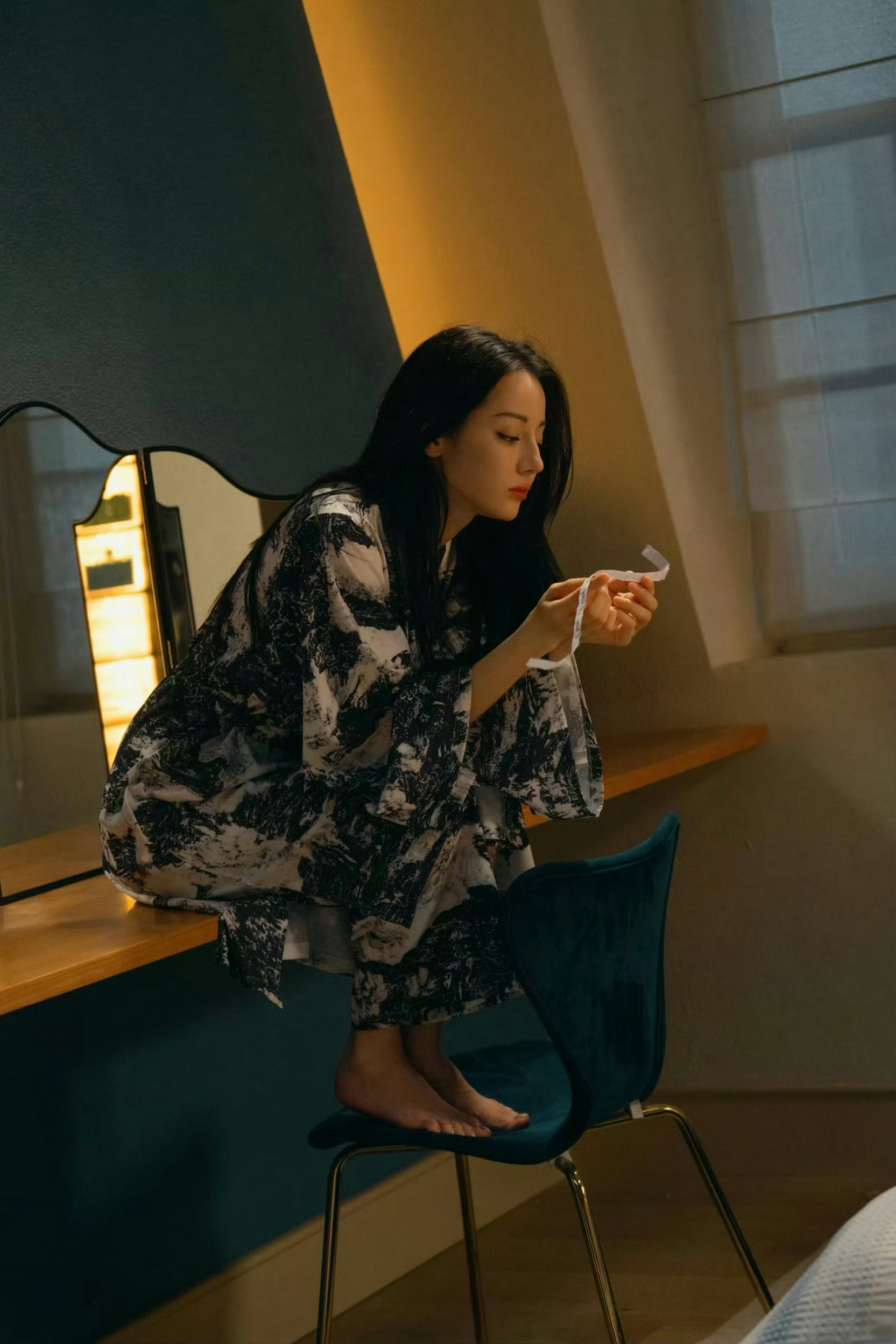 赵粤,卷发黑裙,冷酷时尚。赵粤