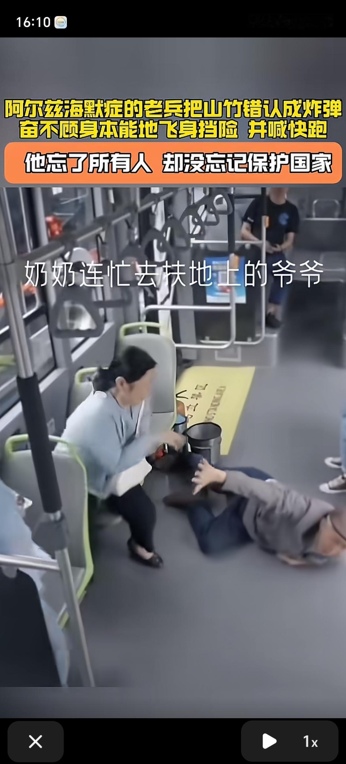 今天是国家公祭日,刚好刷到一个老大爷在公交车上大喊“快跑,有手雷”,双手紧紧握住两个山竹,并用身体紧紧压住,一动不动。 原来大爷是患了一种会失忆的病,当看到车上一个女乘客掉落的两个山竹时,完全是下意识的扑了过去,这是一个老兵的本能反应。 他忘记了很多事情,就是没有忘记自己保家卫国的职责,他的记忆应该是停留在了当兵时的光荣岁月里。 千言万语,只想向英雄致敬!
