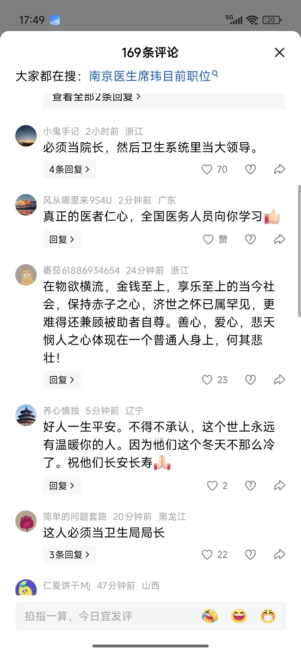 本来是去查账的!却查出他以基金会的名义为280多名患者交了医药费超50万。对病人来说他是医者仁心。但人家根本不知道是他本人垫的钱。 对他老婆来说,这就是个傻子。家里住的老破小,媳妇睡衣上都是补丁。他老婆就没怀疑过,他一个医生,怎么穷的发癫呢? 两口子,真是一路人。南京医生,席伟。没什么感激的,就记住这个名字吧!