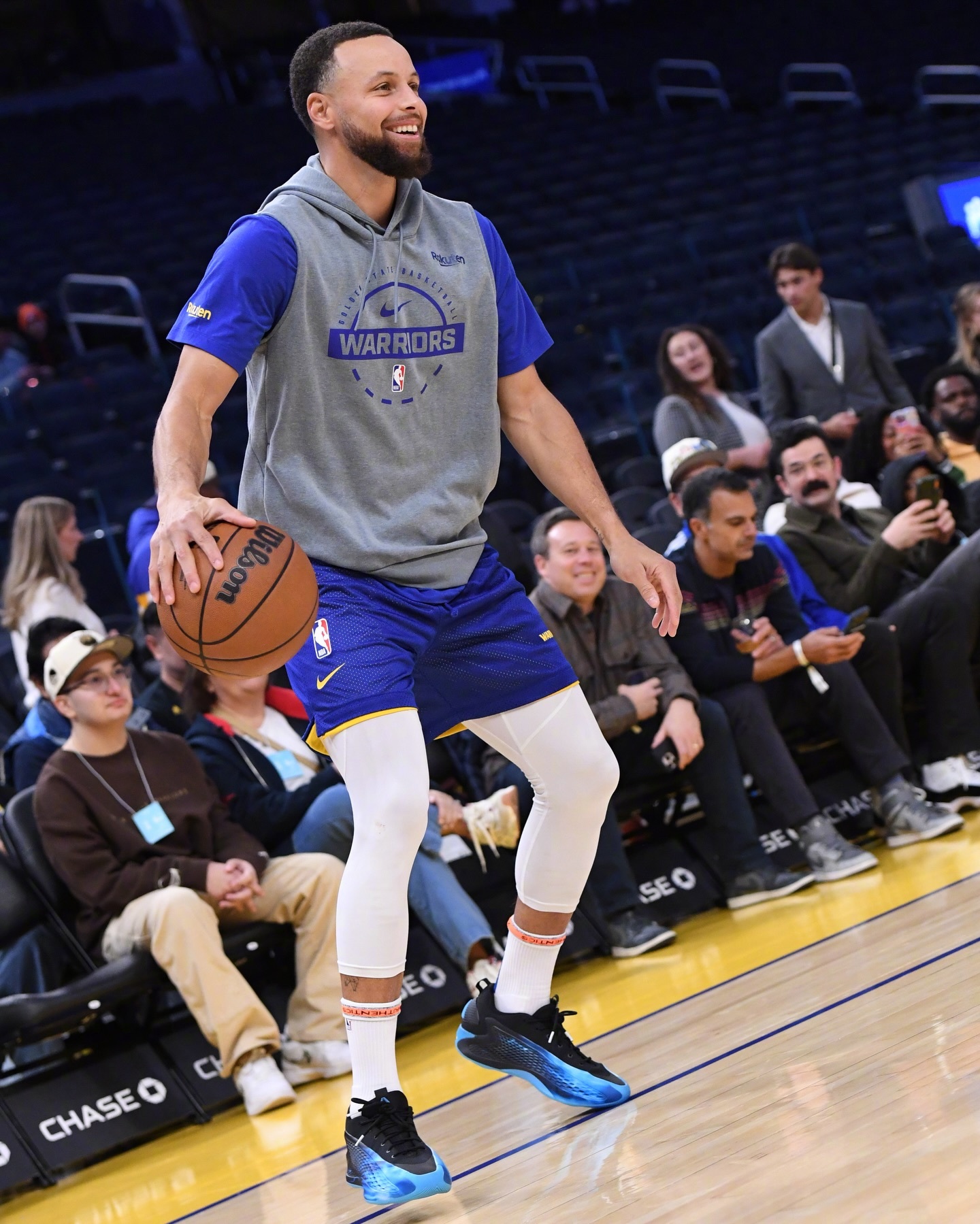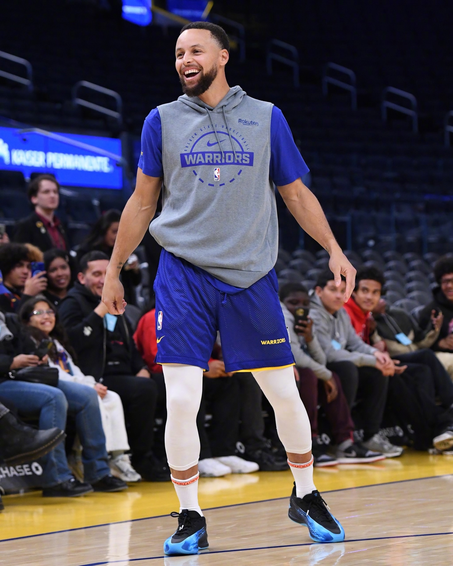 库里今天入场穿着的是加内特的NikeAirGarnett3,热身时则穿了C