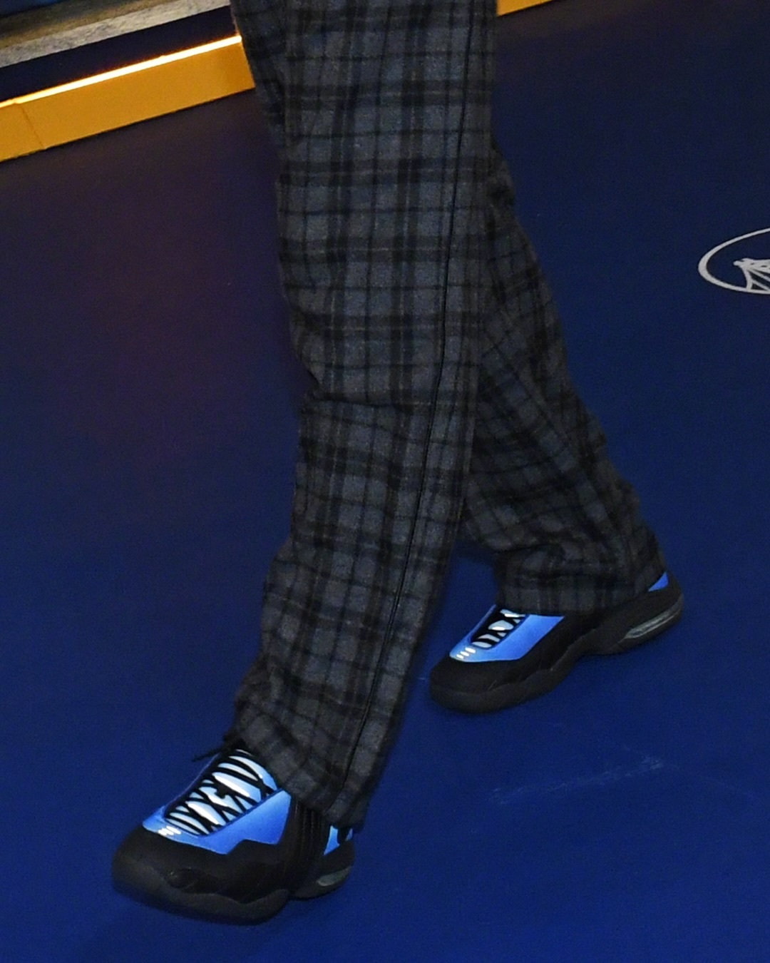 库里今天入场穿着的是加内特的Nike Air Garnett 3,热身时则穿了C