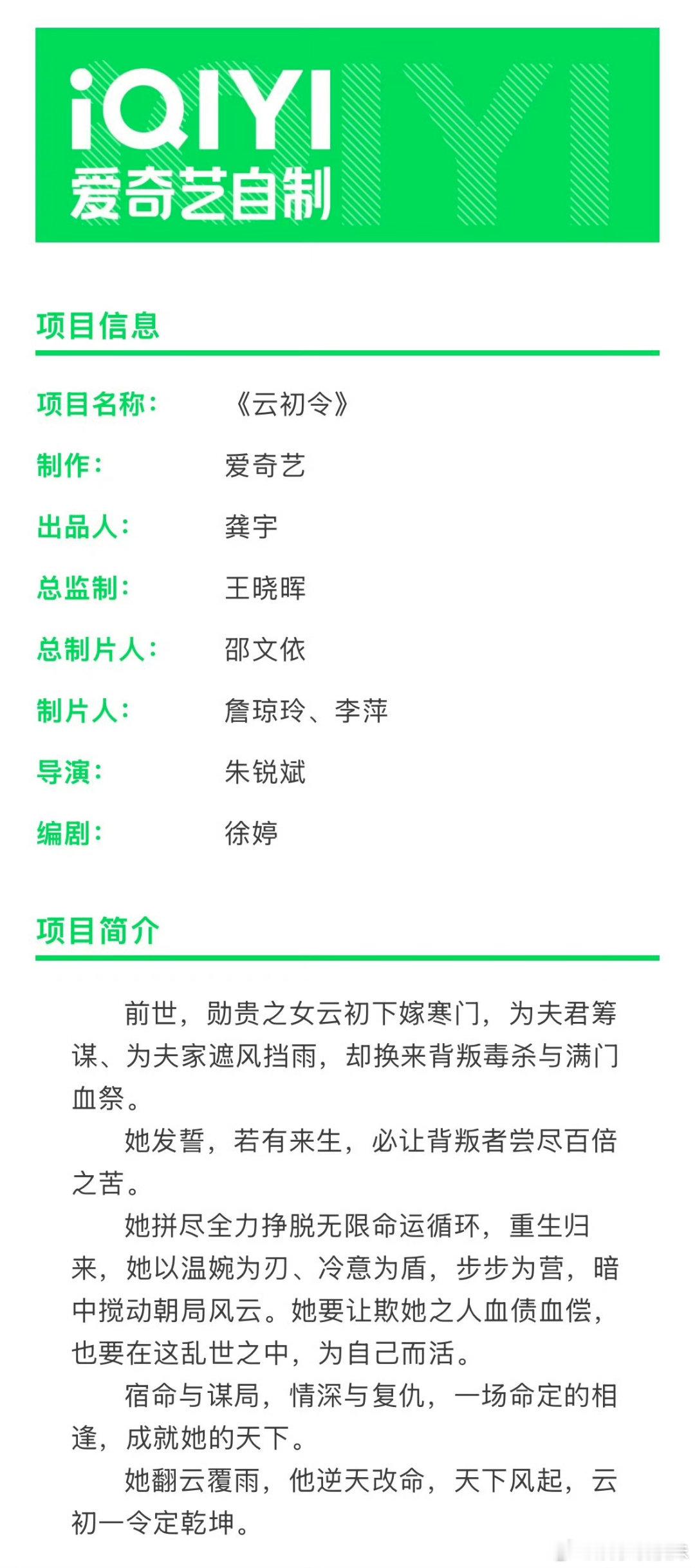 云初令导演朱锐斌 《云初令》导演朱锐斌宅斗权谋双在线🔥将门嫡女虞书欣饰云初 前世为夫家呕心沥血,却遭背叛毒杀、满门被灭。重生归来,她褪去“贤妻良母”伪装,化身“恶女”步步为营,既要让仇人血债血偿,也要护一族平安。期待值拉满了!!!!云初令单独官宣了虞书欣双轨空降