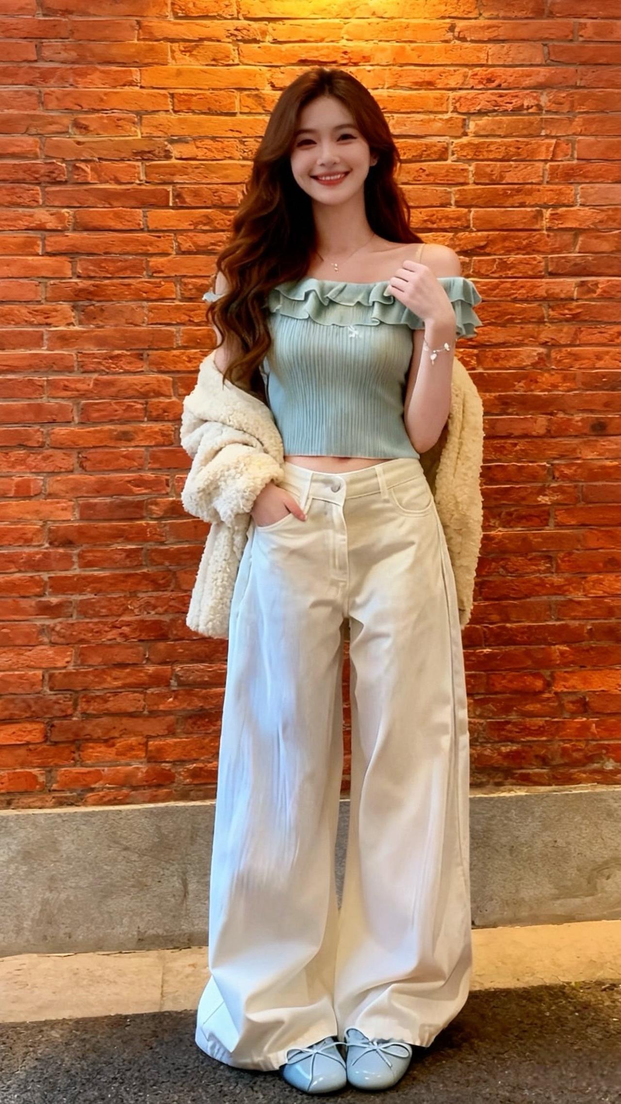 甜妹风 阔腿裤 街拍穿搭 小个子穿搭 休闲裤
