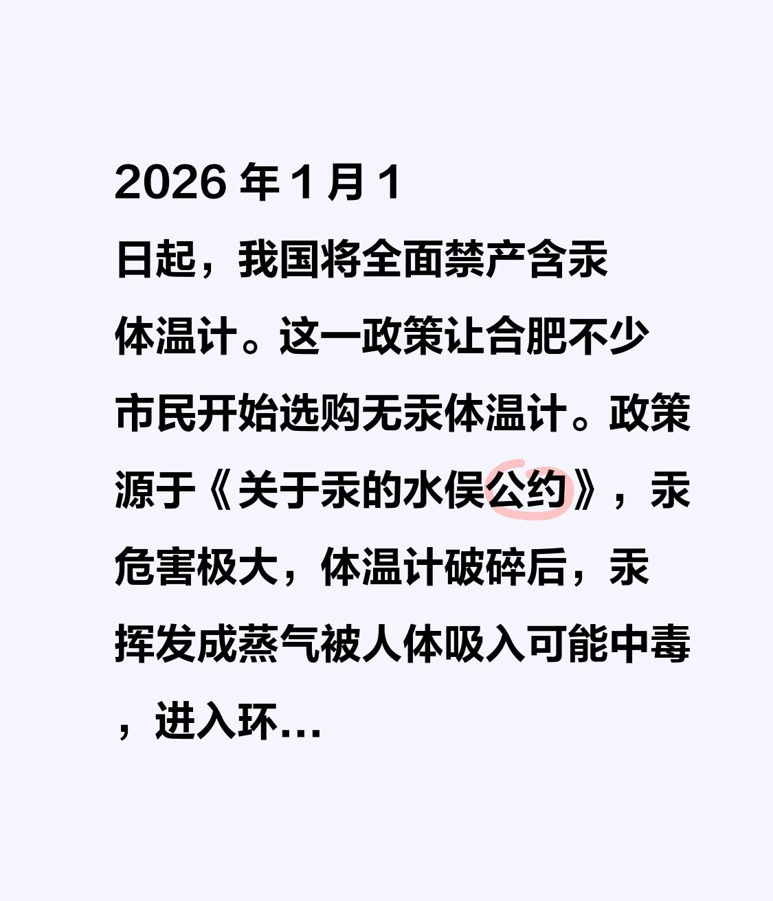 2026年1月1日起,我国将全面禁产含汞体温计。这一政策让合肥不少市民