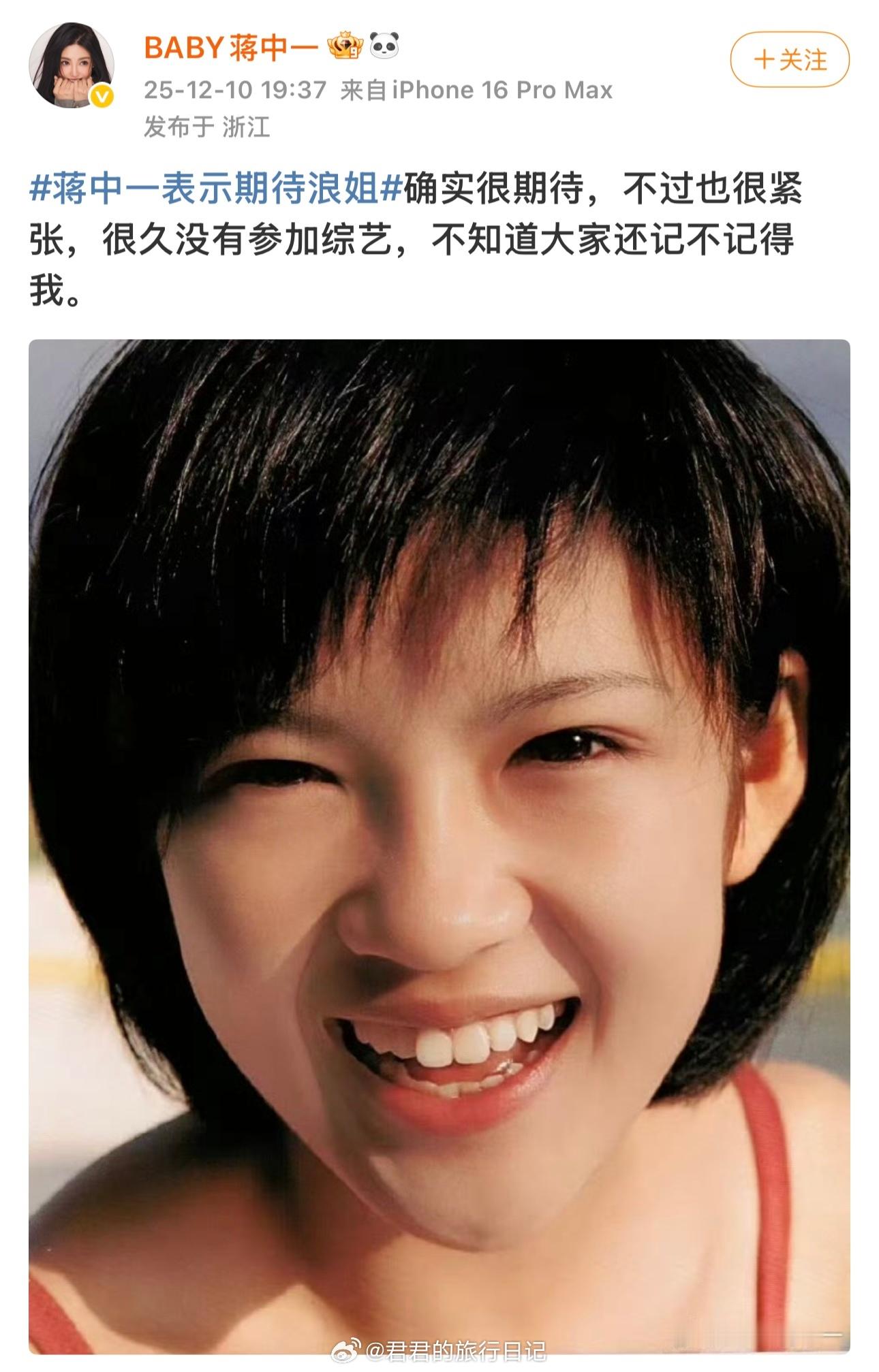 你们还记得蒋中一吗?国内第一代女团青春美少女的成员,11岁出道,今年41岁,要参加浪姐了。