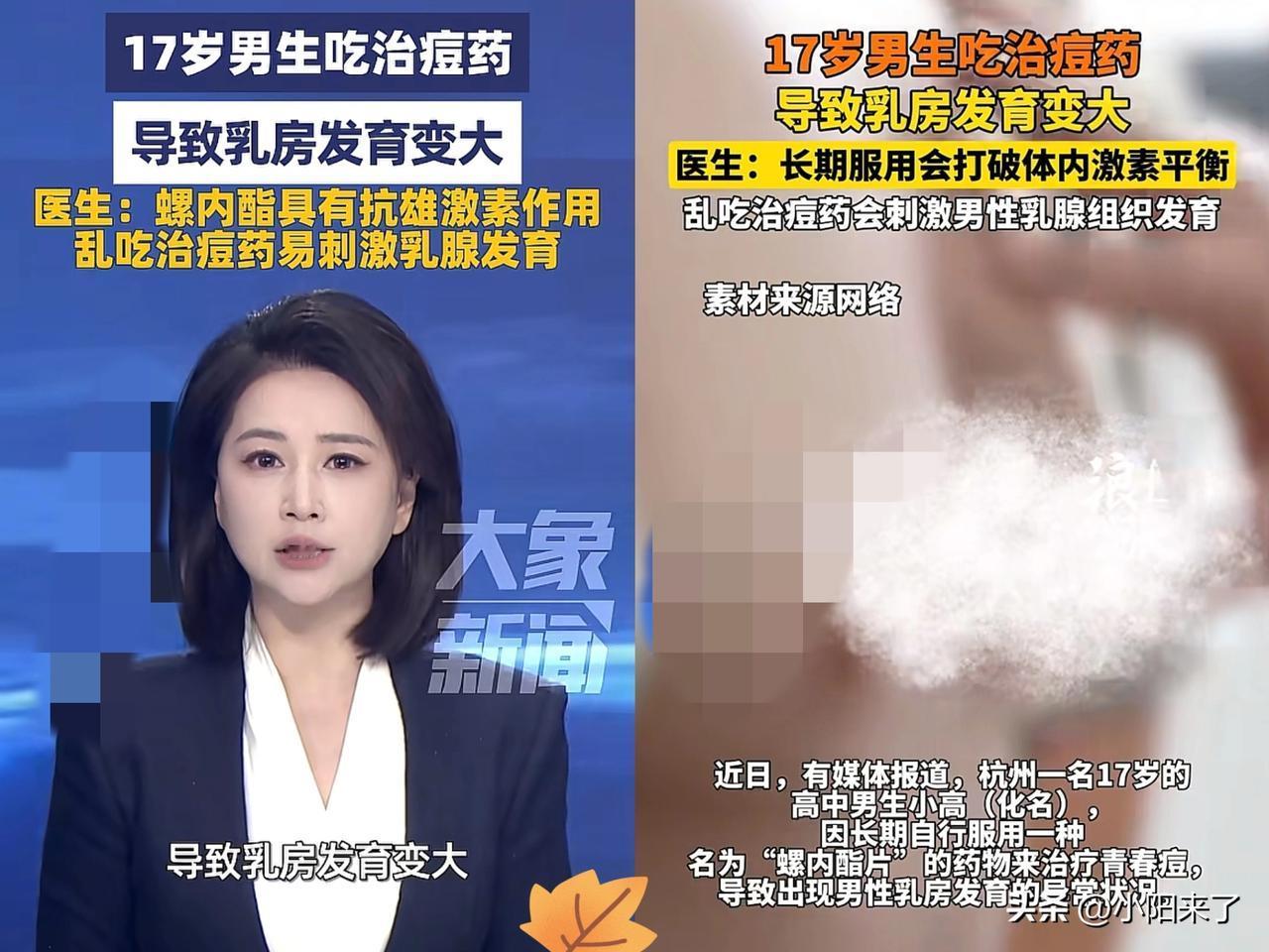 浙江杭州,一男生青春期长痘,在医生的建议下服用药物,刚开始痘痘确实消了不少,但是停药后,痘痘又卷土重来 于是男生擅自去药店买药,痘痘没根治,乳房竟莫名变大还胀痛,医生戳破真相:激素失衡惹的祸,乱吃药比长痘更毁身体! 别觉得处方药见效就能随便吃,医生控剂量、定疗程从不是多余! 男生遵医嘱时痘痘明显消退,停药复发就自己囤药猛吃,殊不知抗雄激素药物长期滥用,会打破体内激素平衡,让雌激素趁虚而入,刺激乳房发育,背后还藏着未知健康风险! 祛痘求快可以,但不能拿健康赌。处方药不是普通零食,哪怕对症也得按医嘱来,擅自加量、续吃只会适得其反! 比起盲目用药,科学就医+规律作息才是王道,别让一时心急,给身体留下不可逆的麻烦!