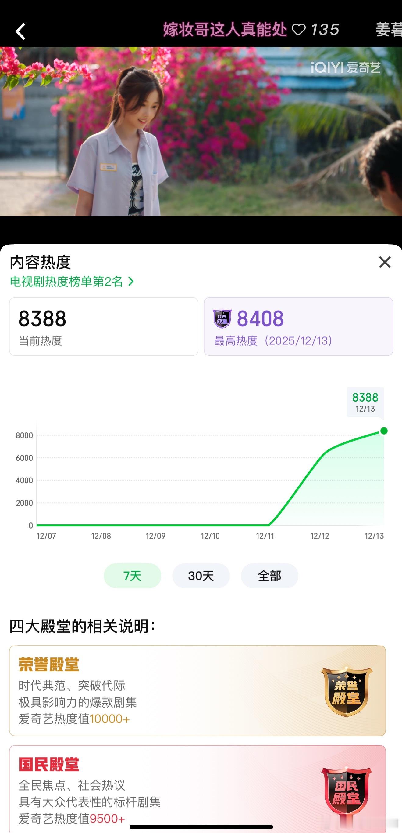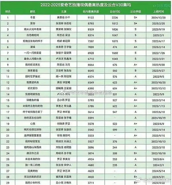 现偶其实一直是爱奇艺短板,平台三年独播现偶热度及V30集均成绩,《双轨》刚播第二天,热度其实已经是近三年历史第四了