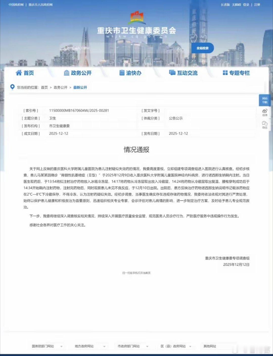 疑给患儿注射3万失效药其次,医院虽称“未见异常”,但药物潜在影响或具长期性。对于脊髓性肌萎缩症患儿,每一针都关乎未来行走能力。此次失误可能干扰整个疗程效果,长远健康风险难以估量,家庭将承受巨大心理负担。最后,此事暴露医院流程监管存在漏洞。仅靠家长查看监控才发现问题,说明内部纠错机制失灵。必须严肃问责,并以透明化操作和严格规程重建信任,杜绝此类事件重演。