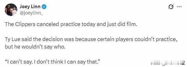 交易日前夕闹罢赛!快船很多球员牵扯到交易导致快船连今天的训练都没法完成! 看来快船内部矛盾已经很大,又是拒绝采访,又是罢赛!快船这是要解散的节奏! 泰伦卢在今天的例行训练中表示,球员没有进行训练,只看了比赛录像! 这次罢赛的主因排除伦纳德,哈登和祖巴茨!可以看出交易的对象应该不是他们三个!